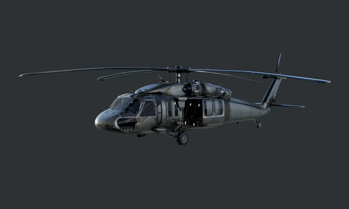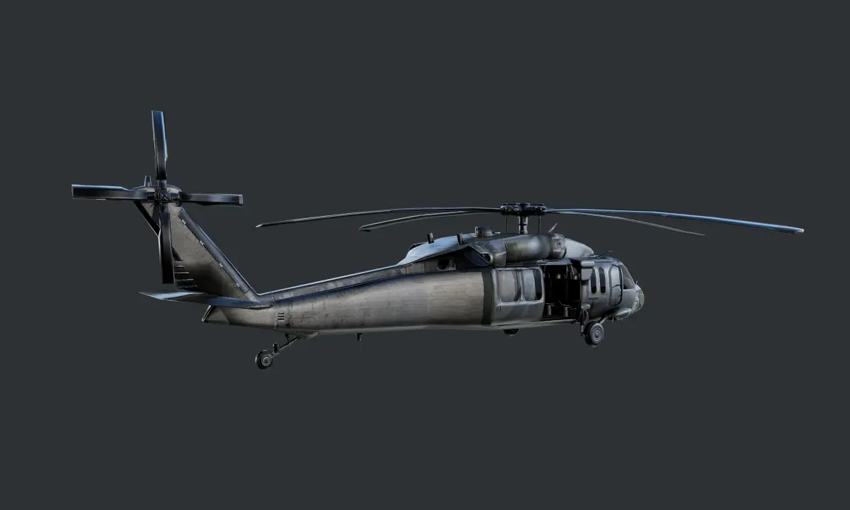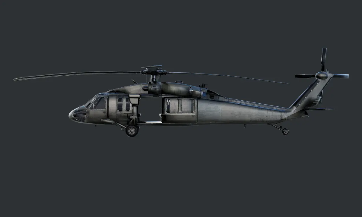 Model of a Sikorsky UH60 Black Hawk Helicopter, optimized for use in game engines. Unwrapped with PBR textures. OBJ files and FBX files. Ready for use in any 3D software or game engine. Unwrapped: Non- Overlapping