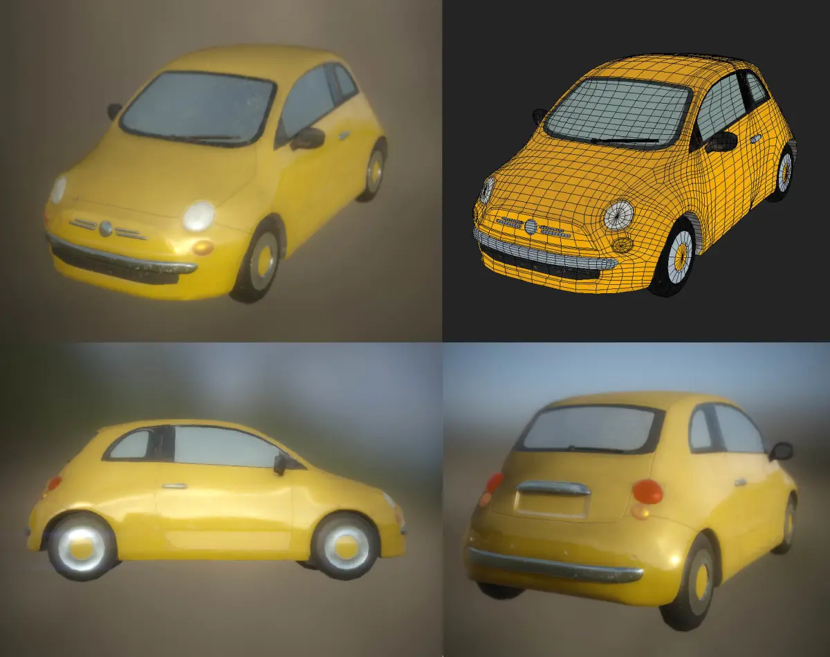 Textures:Car textures are 4K including diffuse, metallic, normal, ambient occlusion and emission maps. Painted on one atlas / one material