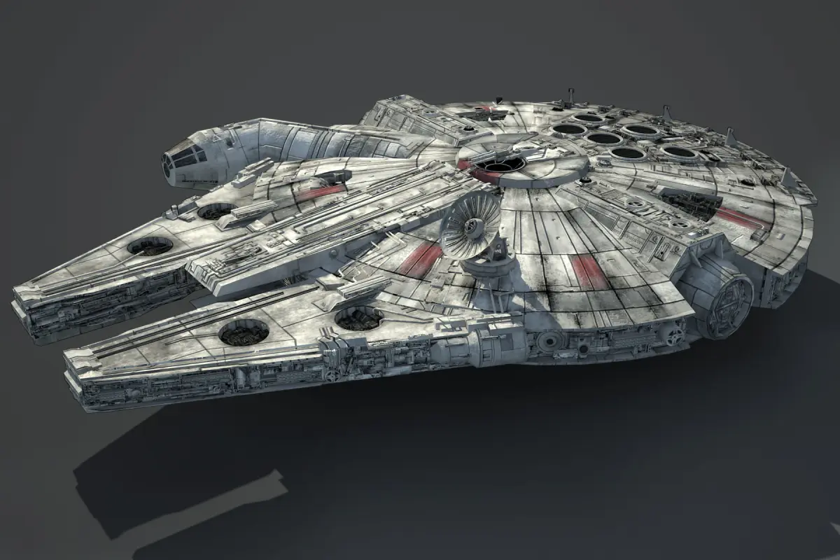 Game Ready Star Wars Millennium Falcon ship, originally modeled in Maya. This is a canon model based on the physical ILM Millennium Falcon sets. *Bonus download of three LOD models - LOD1, LOD2, LOD3.