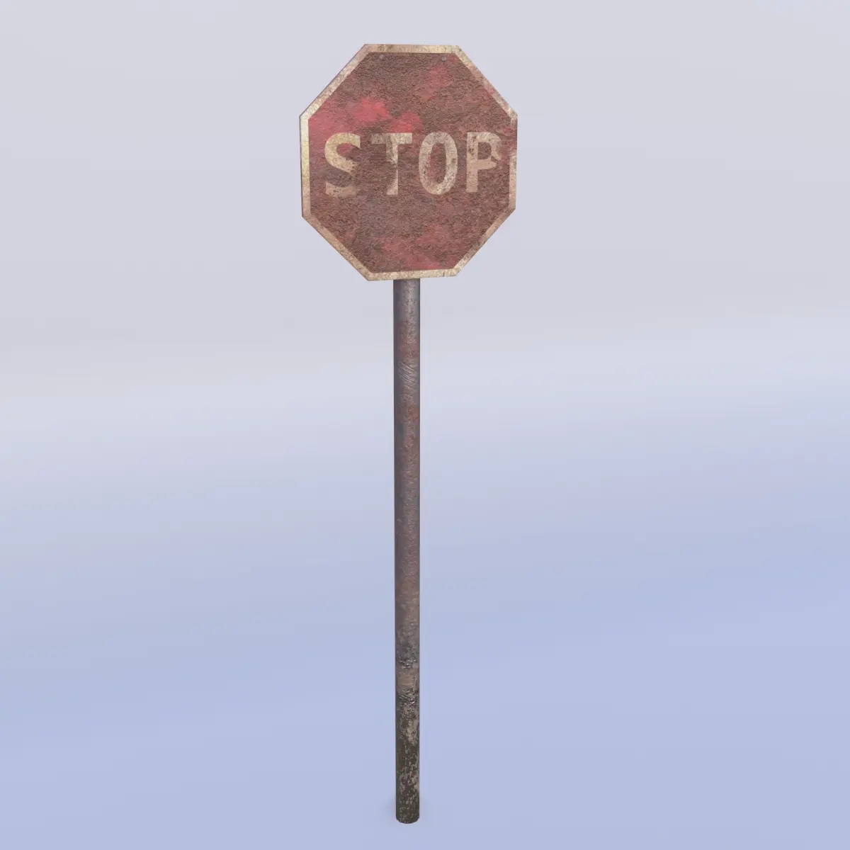 Rusty stop sign 3D asset - fits well with postapo or horror scene- game-ready - highpoly on lowpoly - modeled with Blender 2.80, textured carefully with Substance Painer.Rendered in real time with Eevee (also with different HDRIs). 2 parented mesh objects, single material. UV mapped for most optimal use of UV space. Metric units. H=2,30m, Diameter of the shield =0,60m