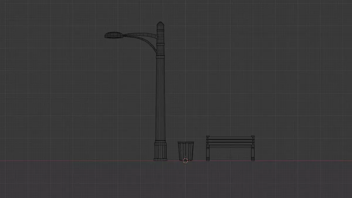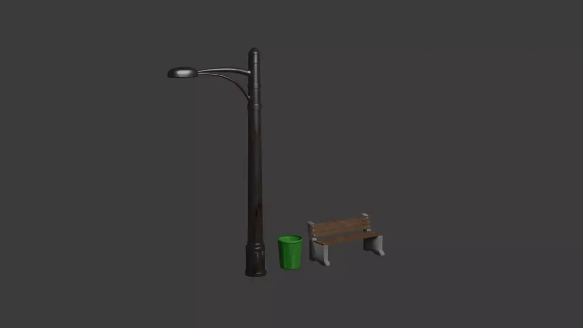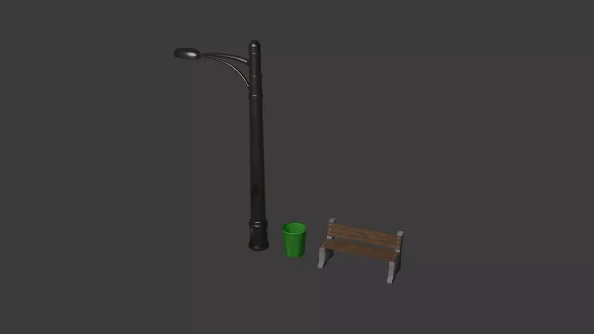 This game-ready low poly street props pack includes three optimized urban assets designed for real-time applications such as games, VR/AR, mobile projects, and architectural visualization.