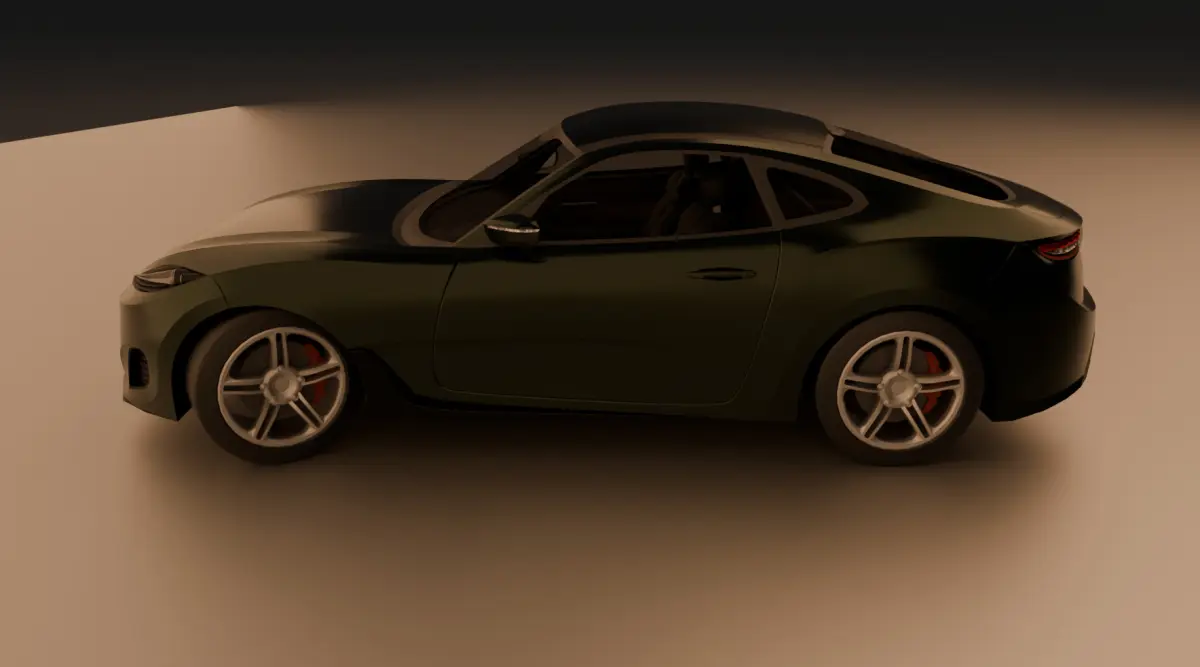 - utilizes blender Principle BSDF for exterior paint (meshes are called: bodypaint, LeftDoorExterior, RightDoorExterior, trunkpaint)