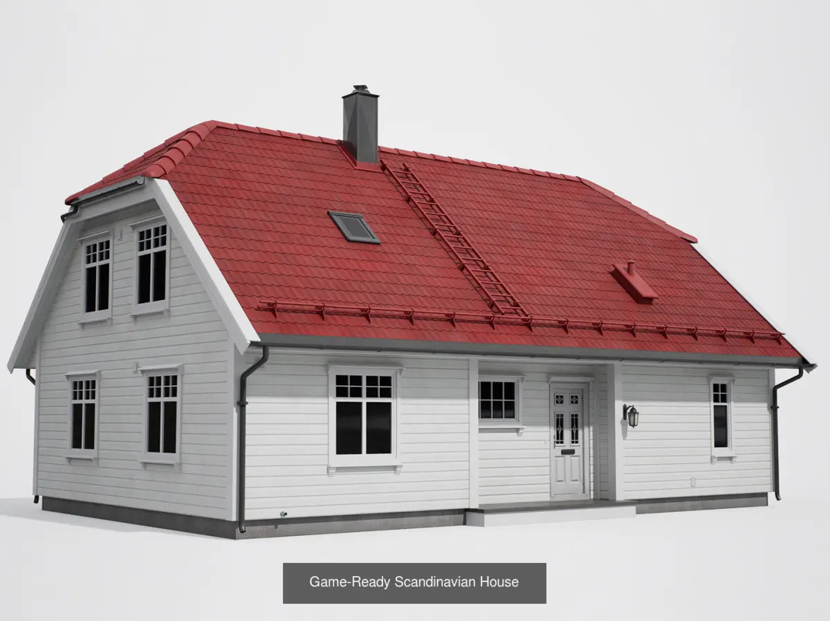 A collection of 5 buildings including 4 sub-urban houses and a church model. House colors and roofs can be customized to produce unique variations. Some textures and trims are shared among the buildings.
