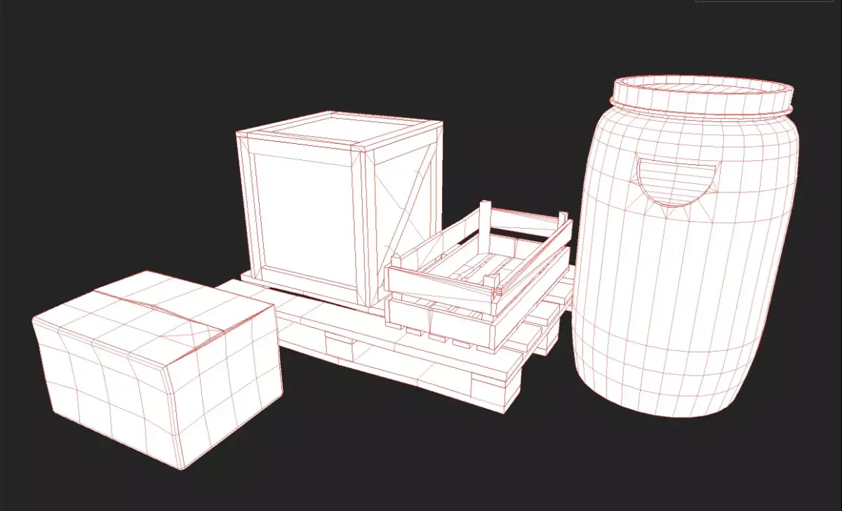 • 2 Wooden Crates (different shapes & sizes) • 1 Wooden Pallet • 1 Blue Plastic Barrel • 1 Carton • Realistic PBR materials – Base Color, Roughness, Metallic, Normal • Textures for Unreal Engine - Base Color, Normal, ARM • Optimized for Unreal Engine, Blender • Low Poly / Game Ready / Real-World Scale • 4K texture sets