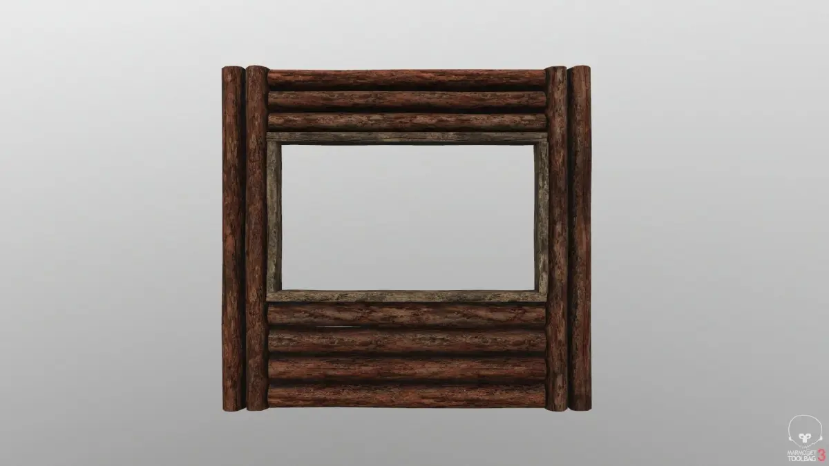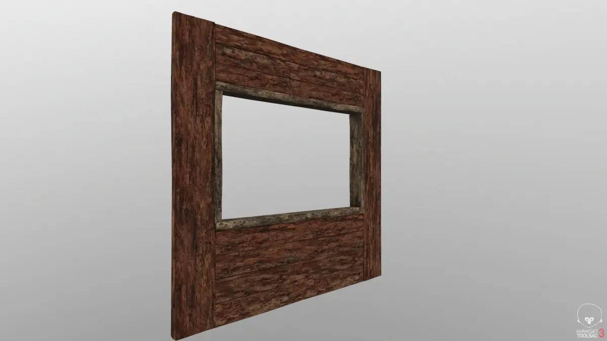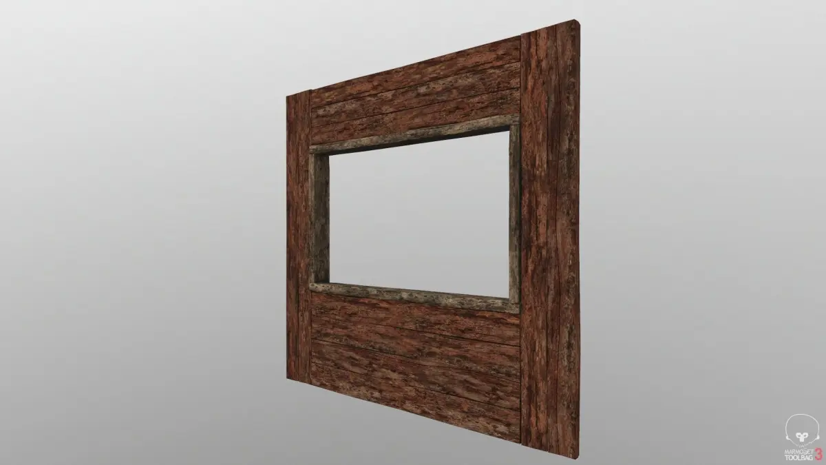 Wood wall whit window frame ready for a game engine