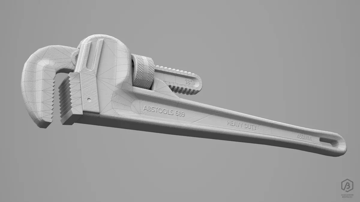 Game Ready Wrench— 1457 faces — 1406 verts — 1x4096x4096 texture — Albedo, Metal/Gloss, Normal, Ambient Occlusion