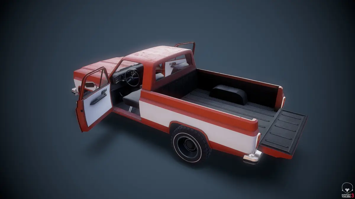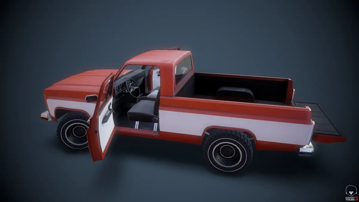 The game ready and low-poly, American Pickup (1989 Dodge Ram Heavy Duty) is on the market now. The model contain UV maping and Animation of wheels. The package has uv map, polygon mesh geometry, One set textures 4K resolution (PBR-Met)+(PBR-Spec), TGA ready (albed, Ambient Occlusion, bump, metal, normal. roughness) needs just connect! :)) The model consists of a body,doors, wheels, trunk lid, bumpers, license plates, windshield, 2 fronts greels.