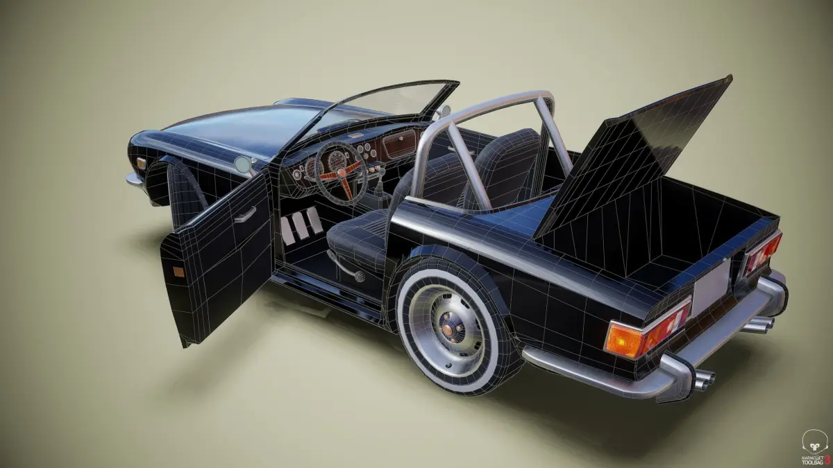 Gameready lowpoly car model. One set textures 4K resolution (MetRough).The model consists of a body, wheels, roof, trunk lid, bumpers, license plates, windshield. All parts are separated.Unity3D size scale.