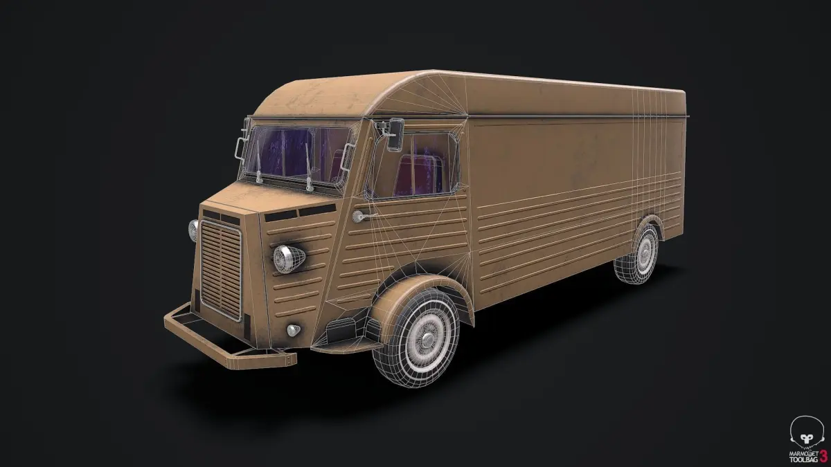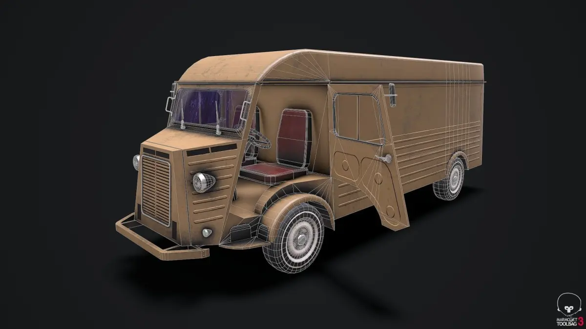 3D model old van compatible with game engines Unity, Unreal,Godot and others. One set 4K PBR textures (MetRough).