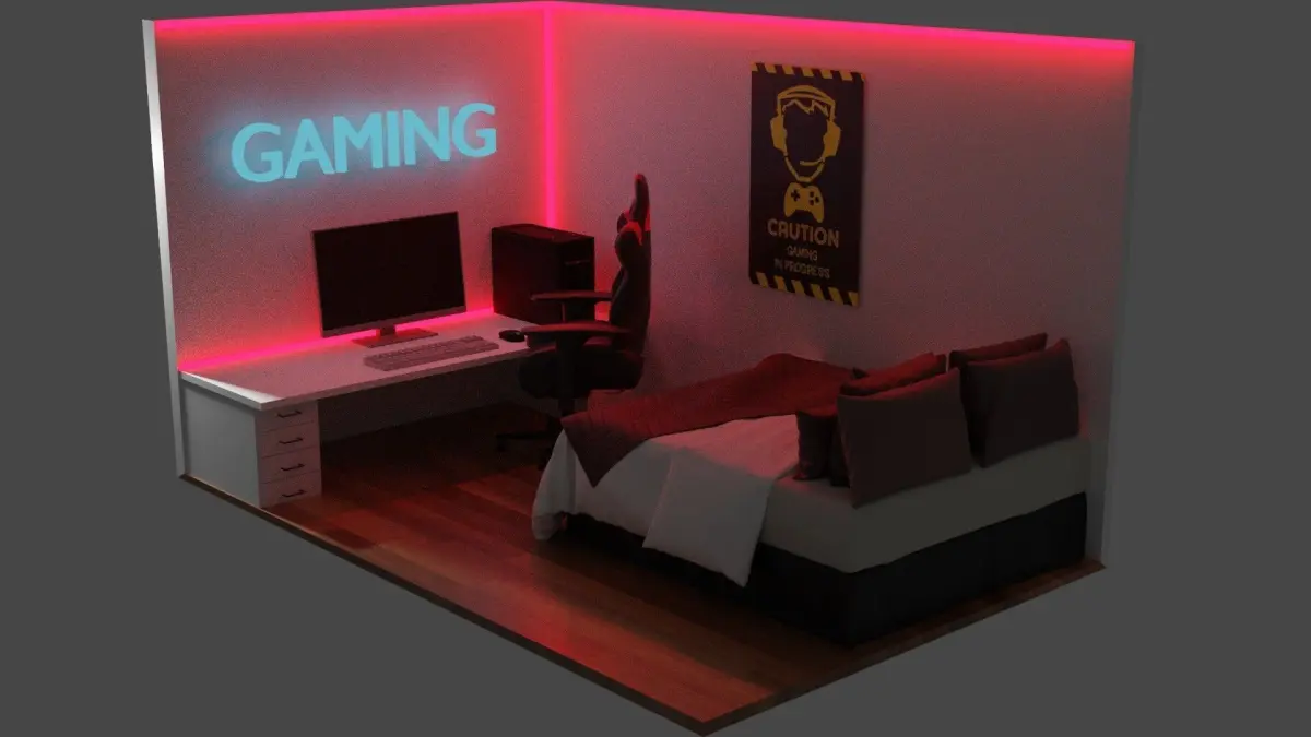 HomeCatalogGamingRoom room with lighting and desk 3D model