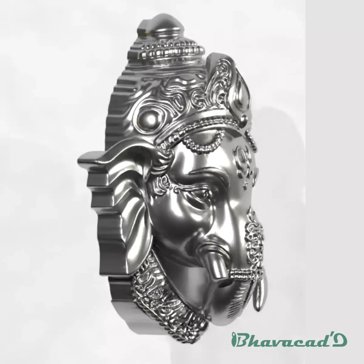 This is a high-quality, professional 3D CAD model of a Ganesha face, meticulously crafted for CNC machining, 3D printing, and other digital fabrication applications. The model captures the serene yet powerful essence of Lord Ganesha, featuring fine details and a clean, manifold mesh perfect for creating tangible, high-precision artifacts.
