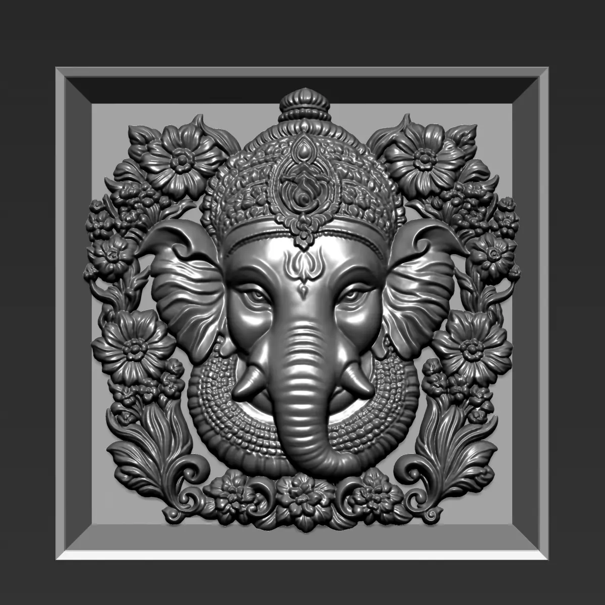 HomeCatalogGanesha Head with Flowers Background A6 3D print model
