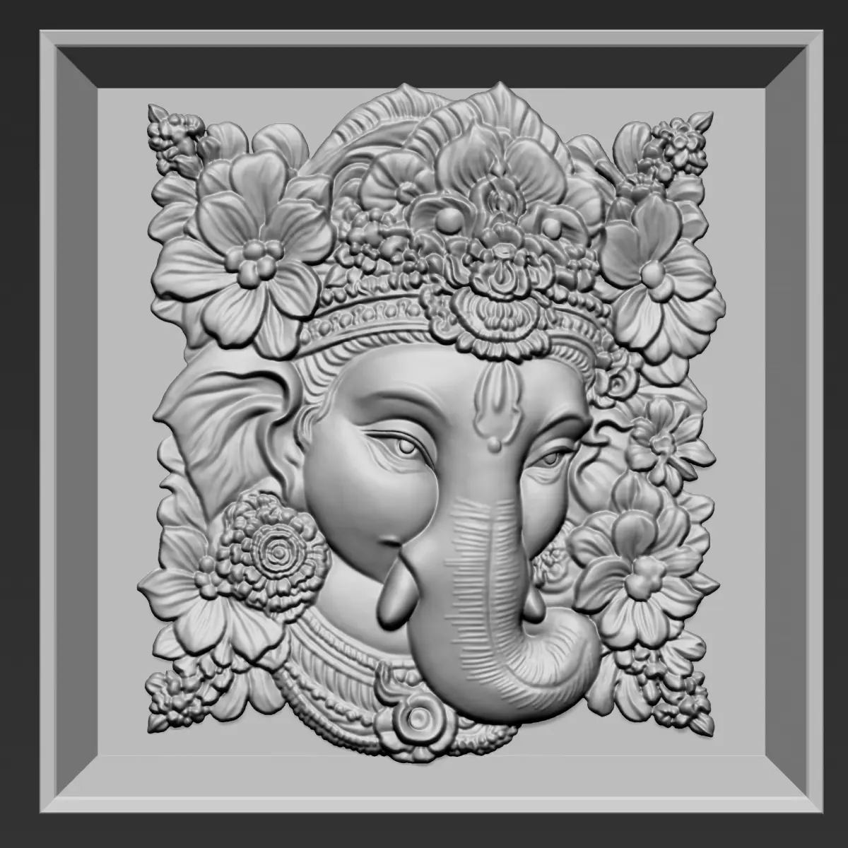 HomeCatalogGanesha Head with Flowers Background A7 3D print model