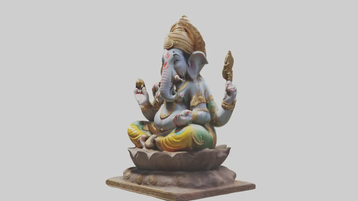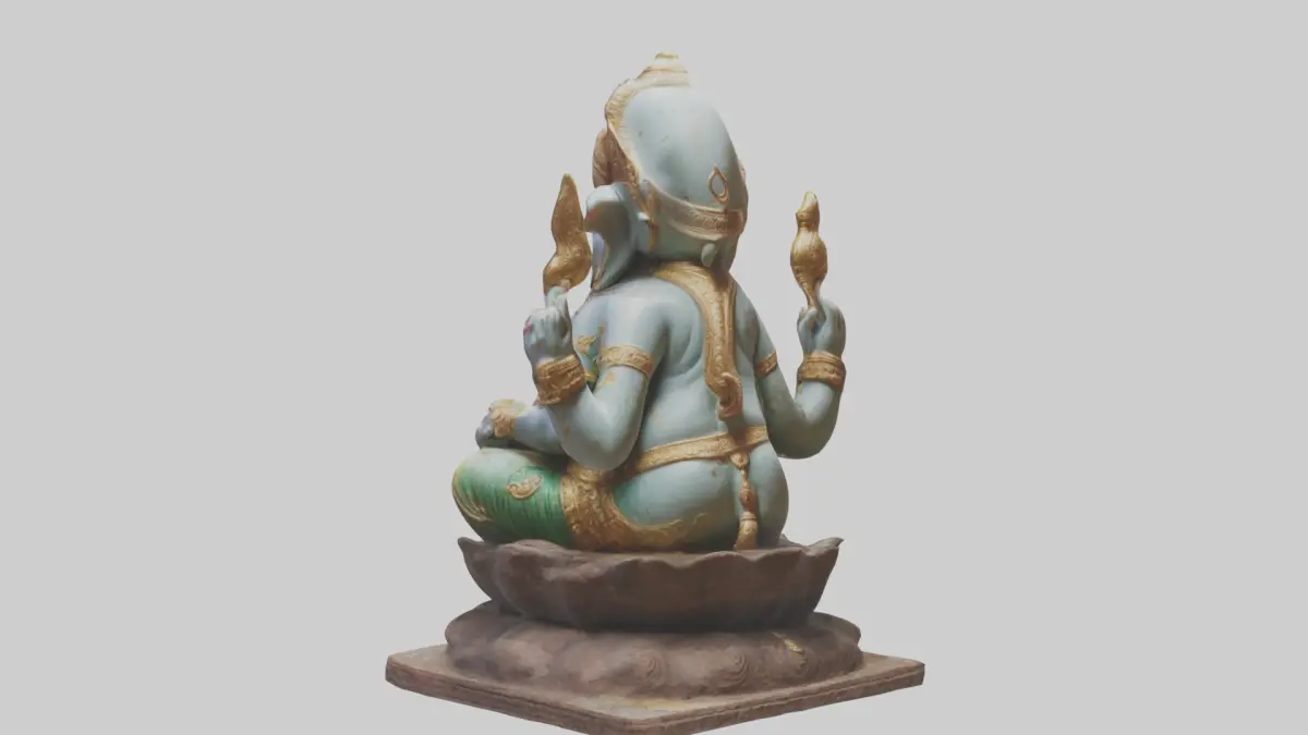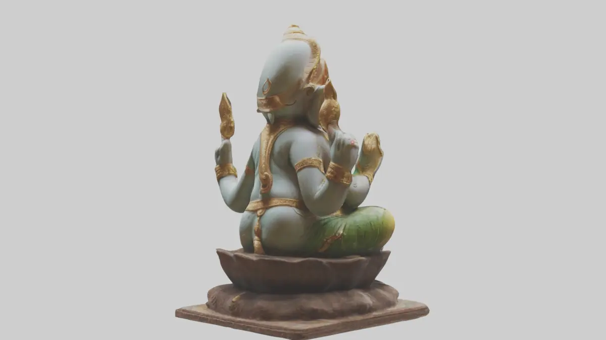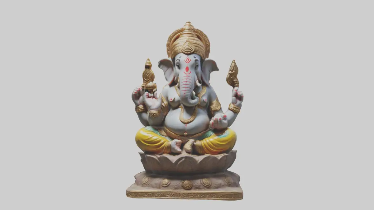 गणेश, modèle 3D, divinité hindoue, tête d'éléphant, dieu des commencements, sagesse, statue, spirituel, patrimoine culturel, bénédiction, protection divine, bras multiples, vêtements traditionnels, art religieux