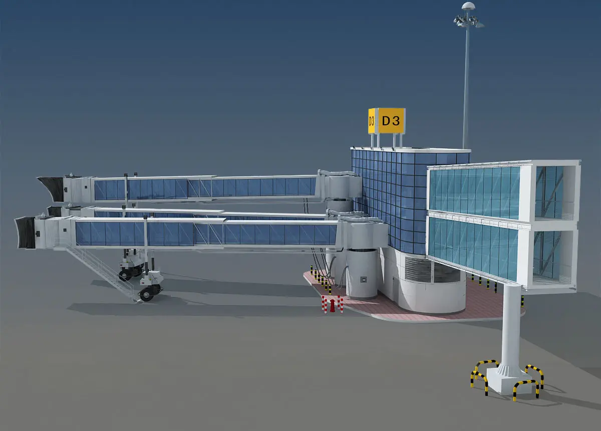 Highly detailed scene with bridge , lobby and gangplank ,ground details.It is modeled in max2010 and rendered by vray, if you don't use vray please download the scanline version, all materials are standard.Totally only 2 textures are used in this model.Scene is real size and well ogrinzed, u can easily merge into your airport scene and it fit well.Try and enjoy it!