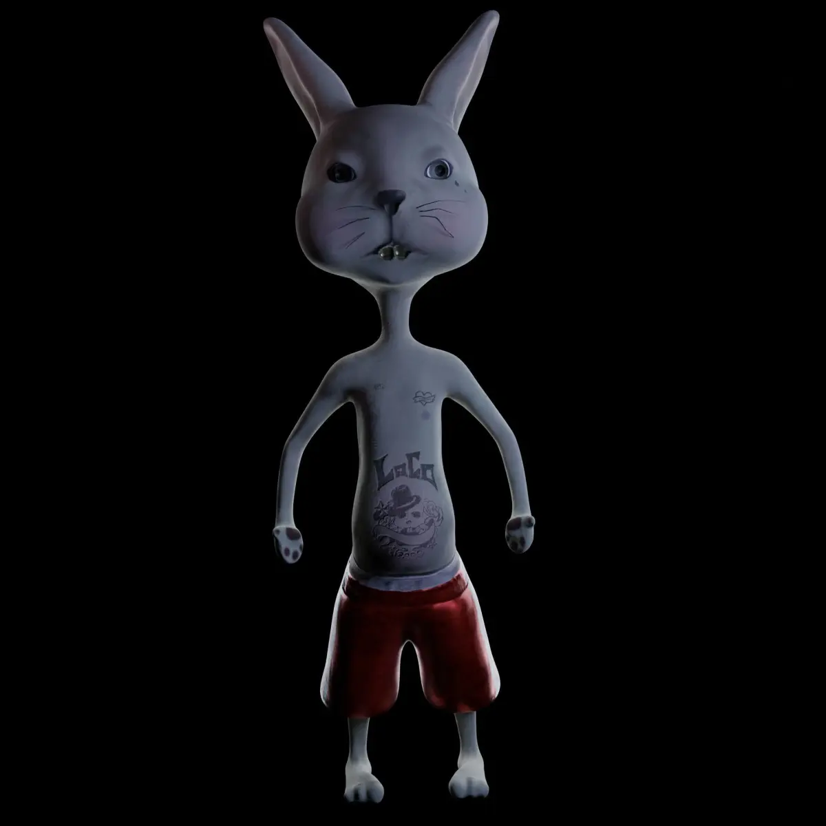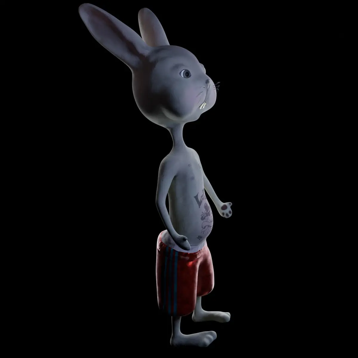 HomeCatalogGangstaBunny bunny with tattoos and shorts Low-poly 3D model