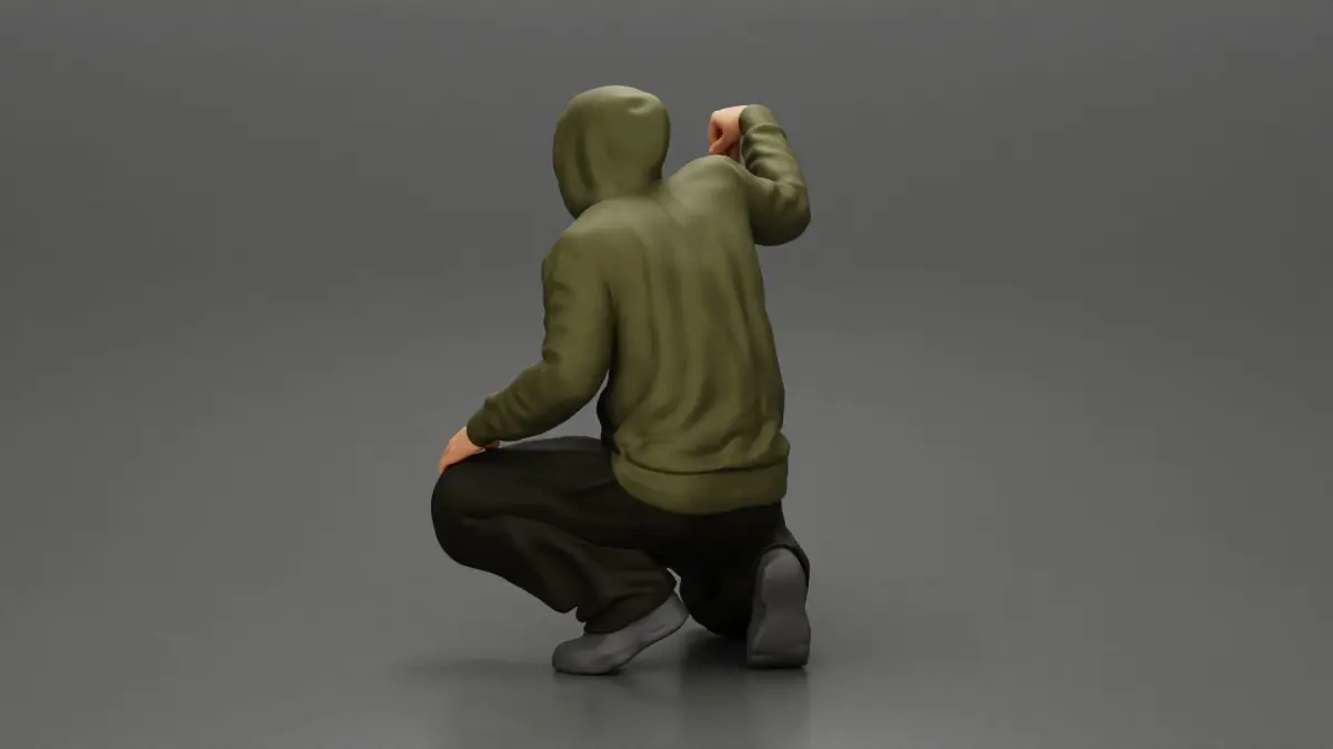 gangster homie in hoodie sitting holding a baseball bat 3D print model