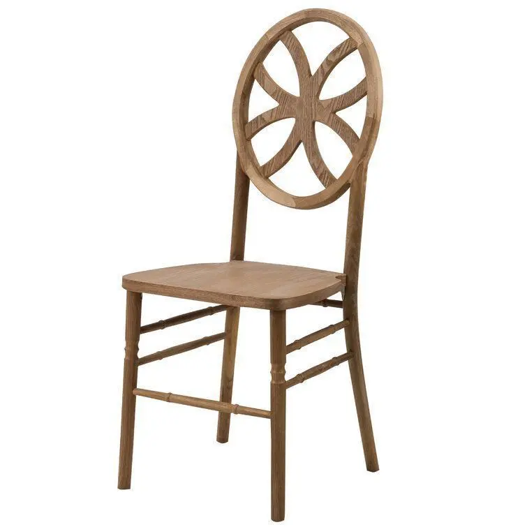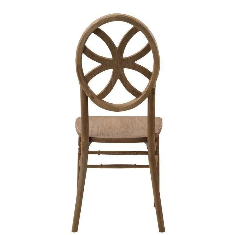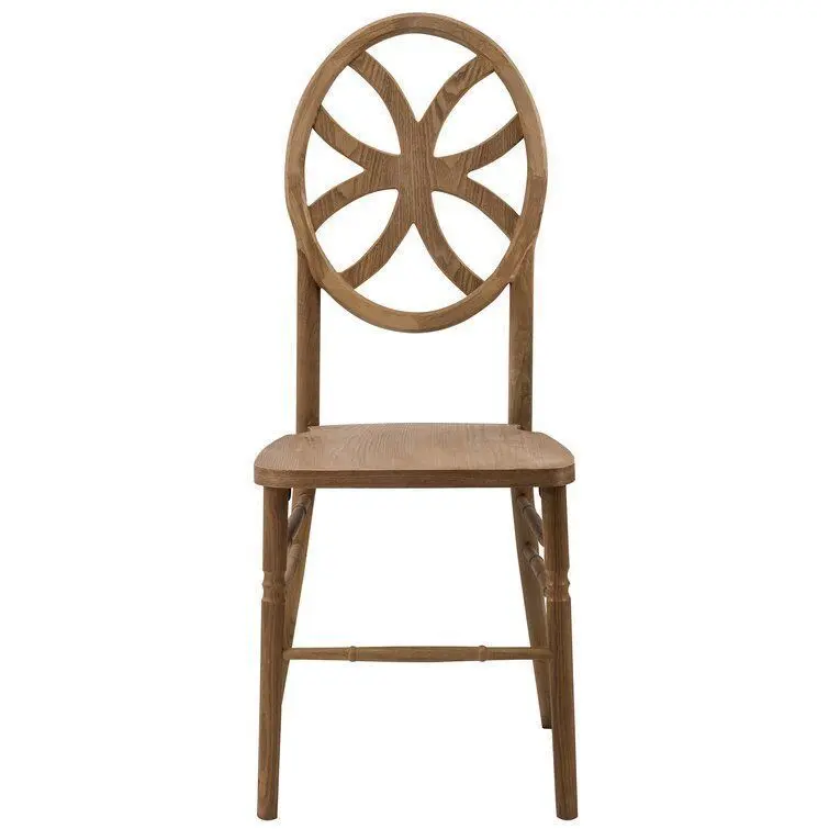 - On this dining chair, you’ll be enjoying home-cooked meals in style (no matter how that new recipe turns out). Crafted from solid wood, it boasts a solid finish for a look that won’t clash with your colour palette. Its legs are connected by straight stretchers for a touch of traditional appeal while up top, its circular, open back sports geometric accents for a little contemporary flair.