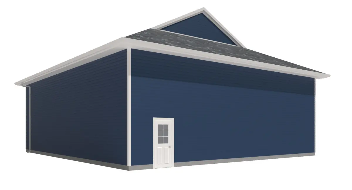 +/- 2,200 Square Foot Garage With 3D Blue Siding Exterior Finish and Black Shingles. Siding Color can be adjusted to any color desired by Changing Diffuse Color Slot-Garage can be a Residential or Commercial Garage/Warehouse