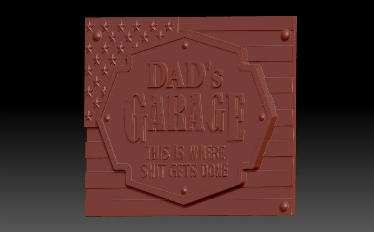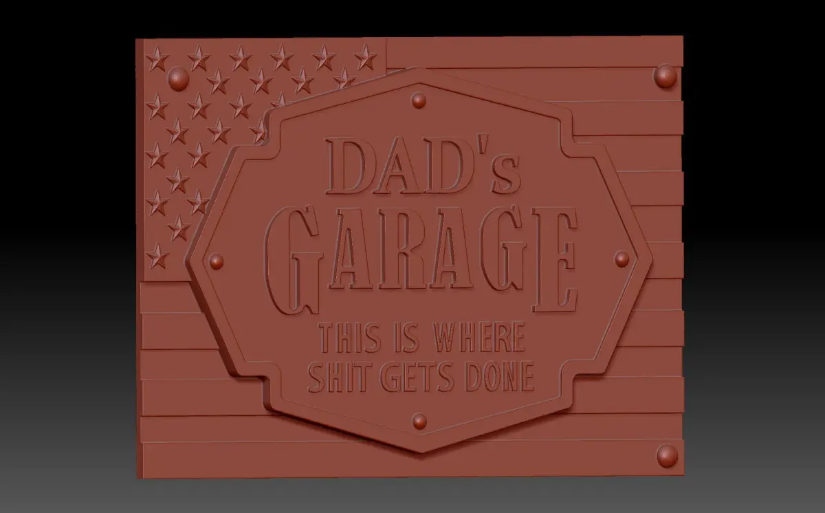 A 3D model of a bas-relief depicting the American flag and the inscription Garage. This project is ideal for both 3D printing and machining on a numerically controlled machine.