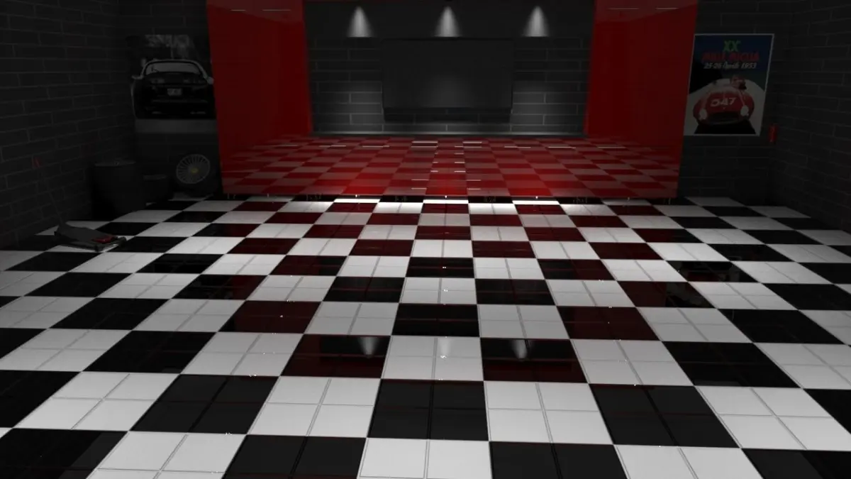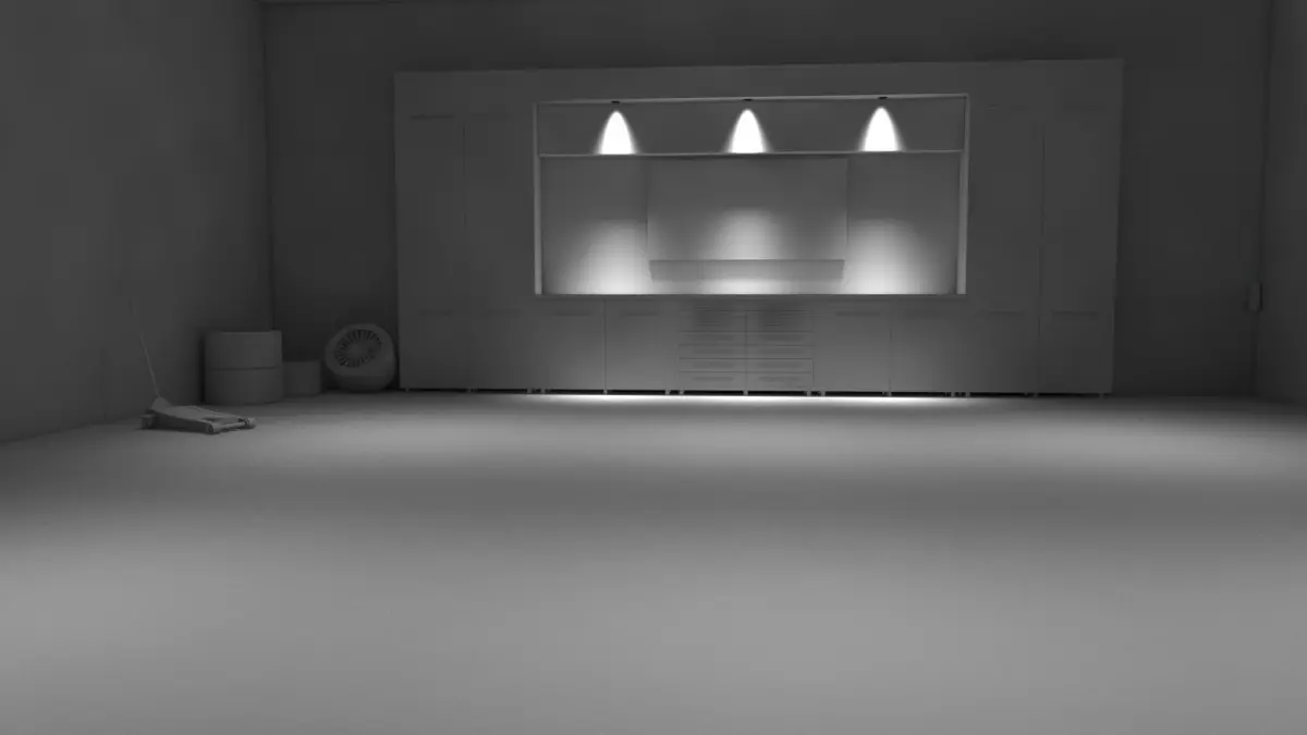 Only the interior of the garage is modeled, ready for render