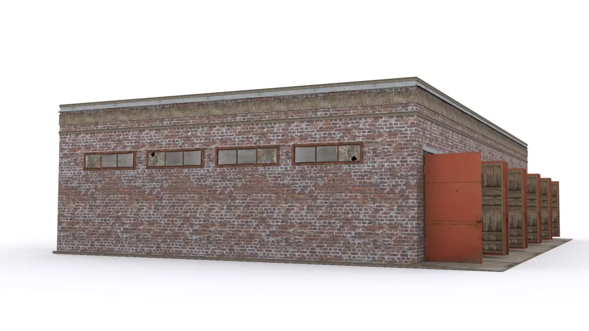 Garage brick building Low-poly 3D model