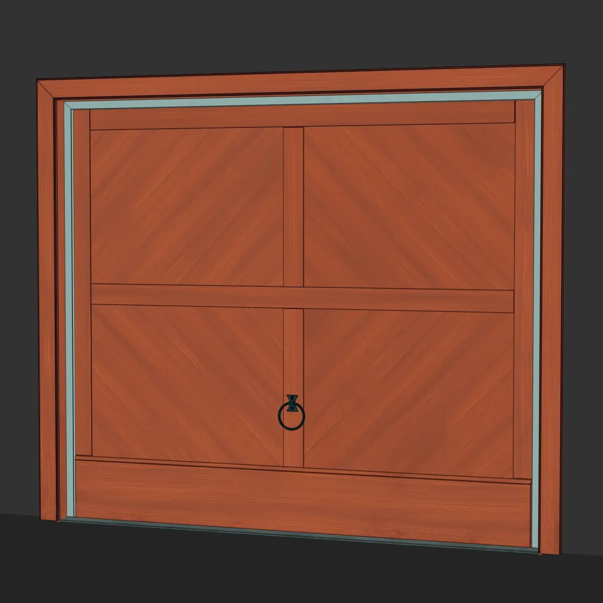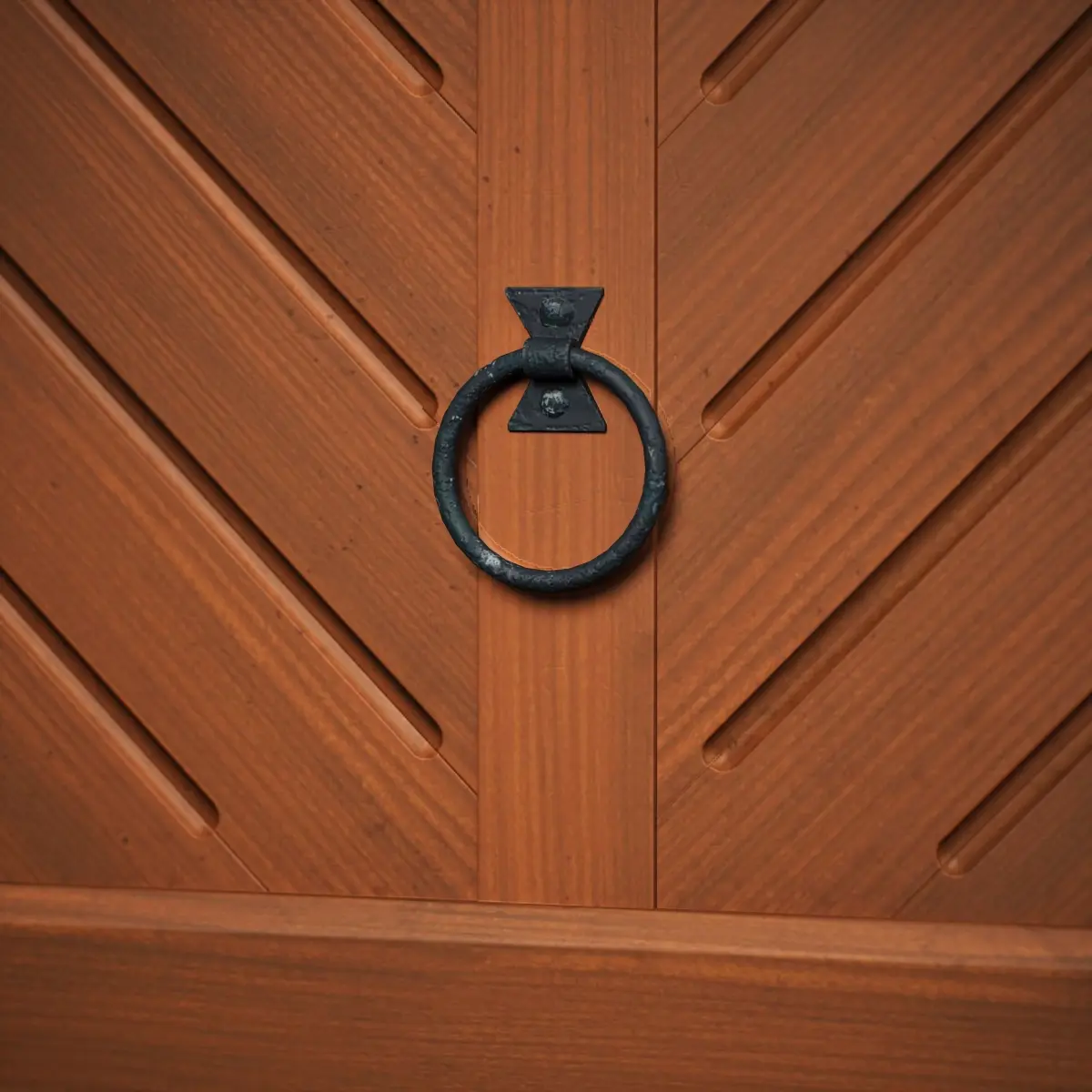 Wooden Garage Door - larch wood, finished - metal frame - black metal ring handle
