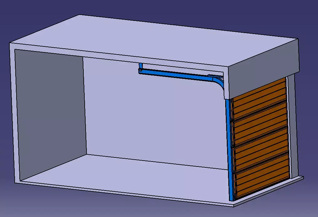 This 3D model of a garage roller door accurately captures the practical and aesthetic design of a modern garage entrance. The model features a classic segmented curtain structure, with each slat meticulously crafted to showcase a sturdy geometric profile and excellent wind resistance. The surface can simulate common finishes like metallic paint or wood grain texture, and is complemented by a detailed track and roller system that clearly illustrates its smooth lifting mechanism. The inclusion of an upper axle drum and an optional side-mounted motor unit further enhances the model's realism, making it not only visually authentic but also suitable for various digital applications such as architectural visualization and animation, establishing it as a fully-functional and highly realistic 3D asset