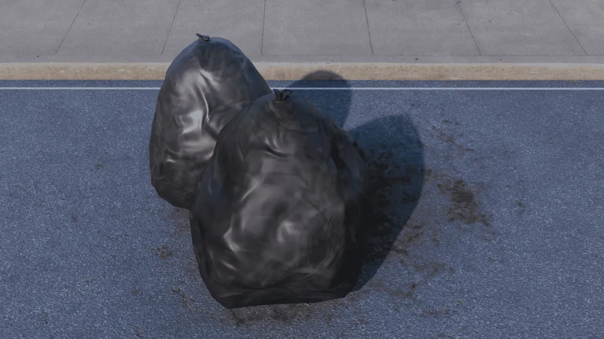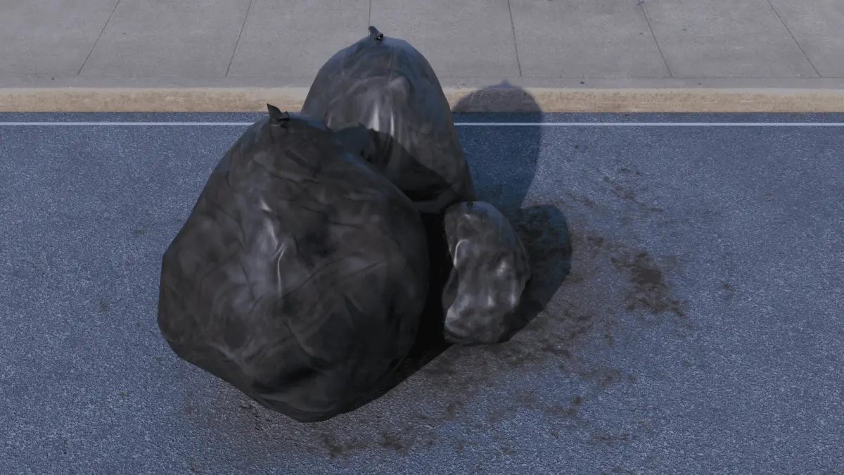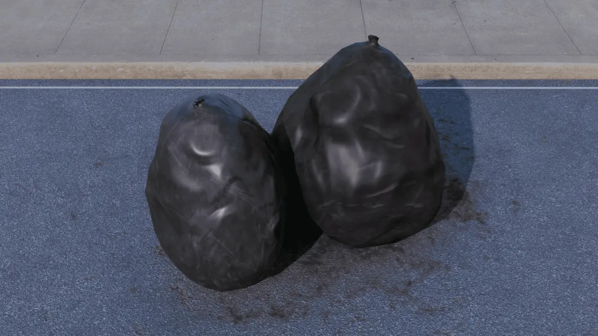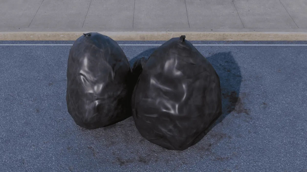 Garbage bags, created in blender and available for free.