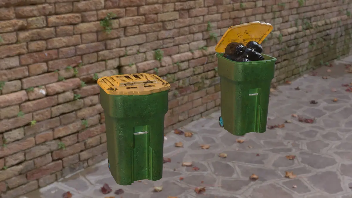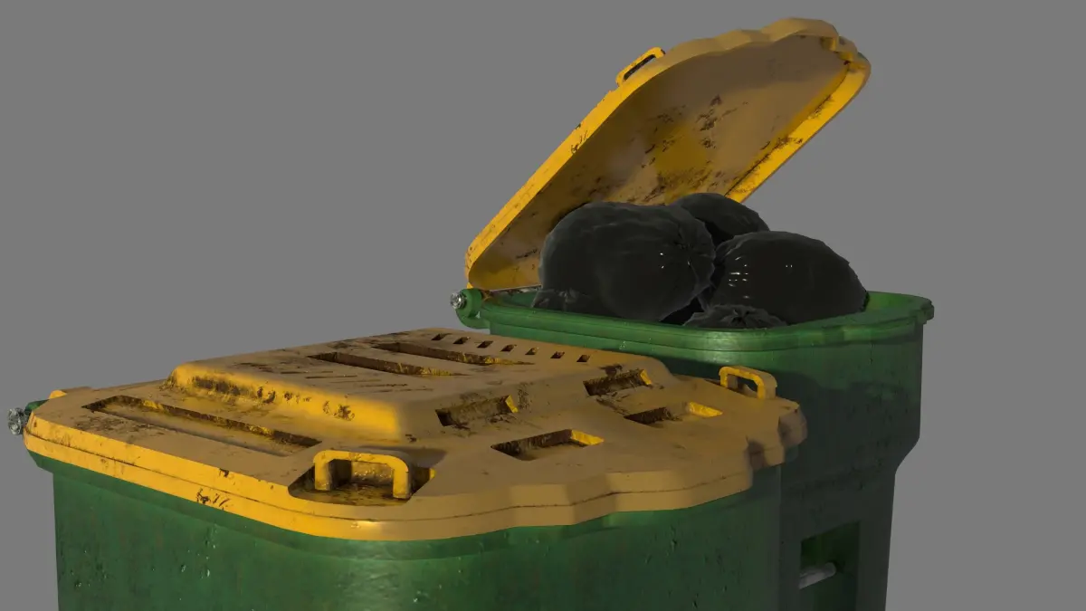 Garbage can. The model is made in a blender 2.82.simulation from a real sample.
