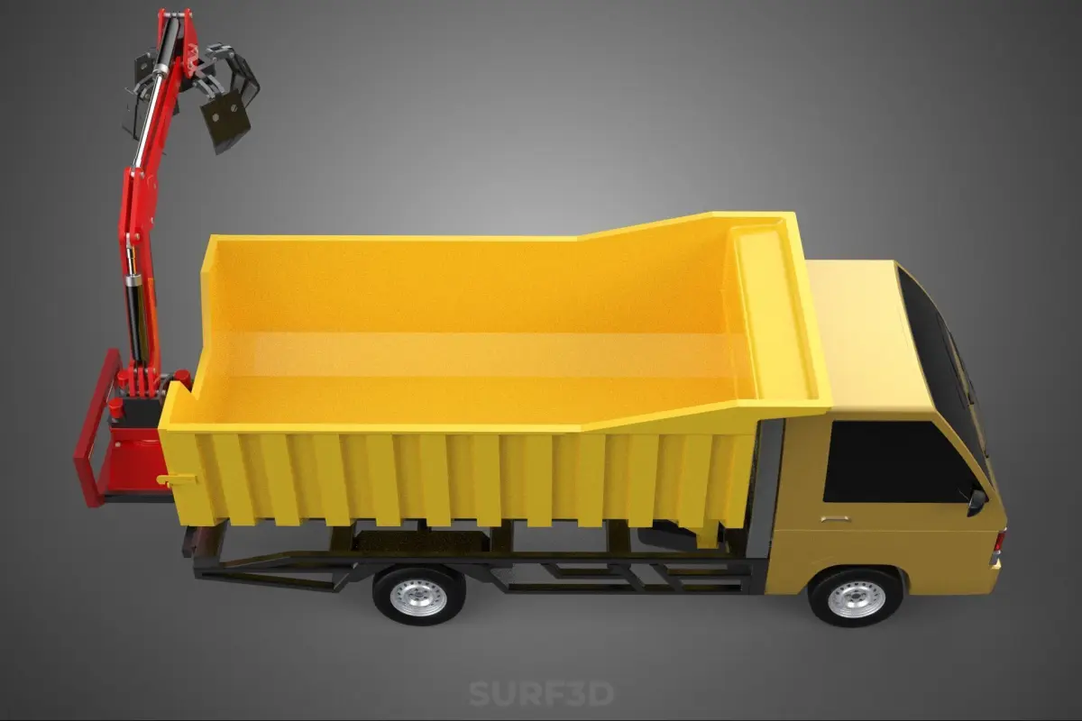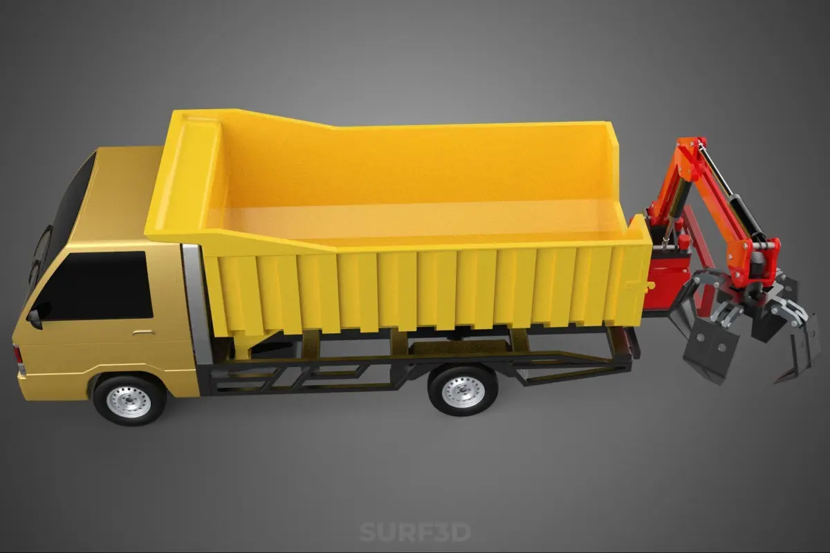 The combined functionality of the dump truck, crane, and grapple allows this vehicle to perform various tasks efficiently: