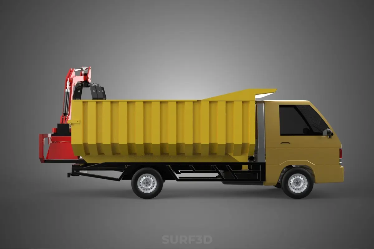 This configuration provides significant advantages in terms of labor reduction, safety (by minimizing manual handling of heavy/hazardous items), and versatility compared to manual loading or using separate pieces of equipment. The dump body ensures that once loaded, the material can be efficiently transported and discharged.