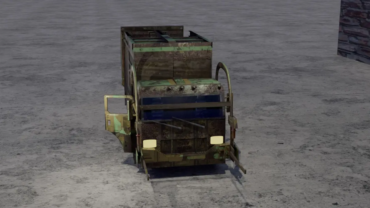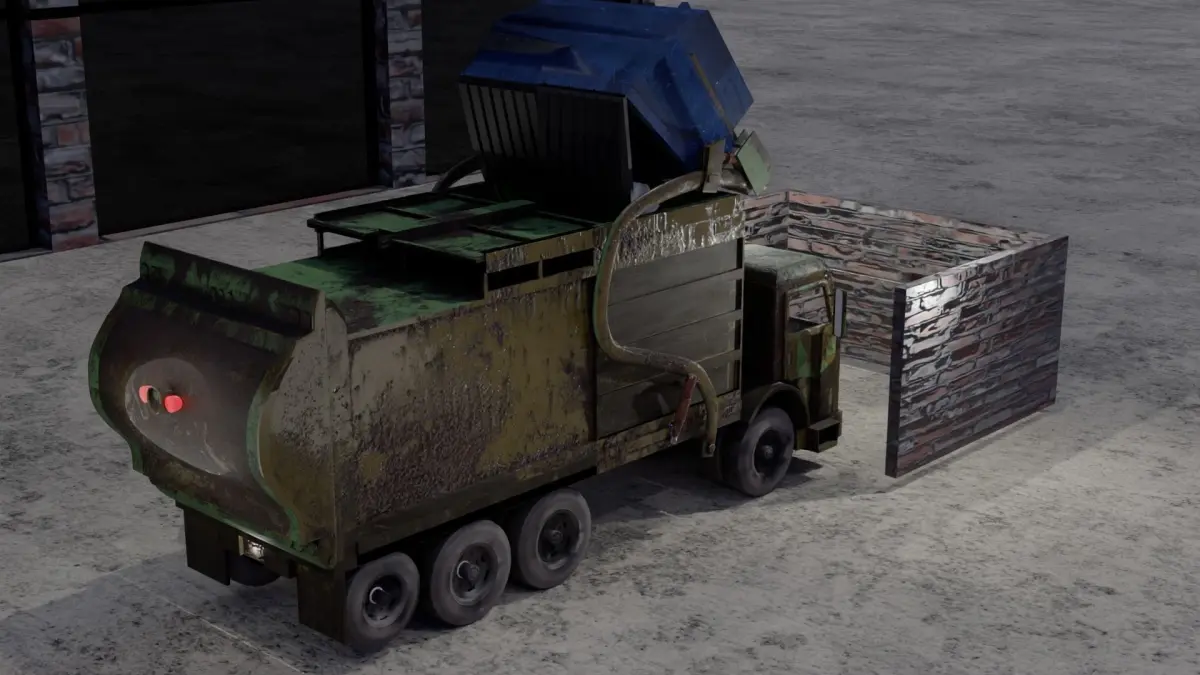 Almost fully functional garbage truck. Lift works, wheels move but, do not turn left or right. Only goes forward or backwards. Back lid opens, top lid opens. I added an animation of the truck moving forward, then picking up a dumpster and empting the garbage. Unfortunately blender doesn't allow drivers or constraints to be exported, so the moving parts would need to have drivers and constraines.