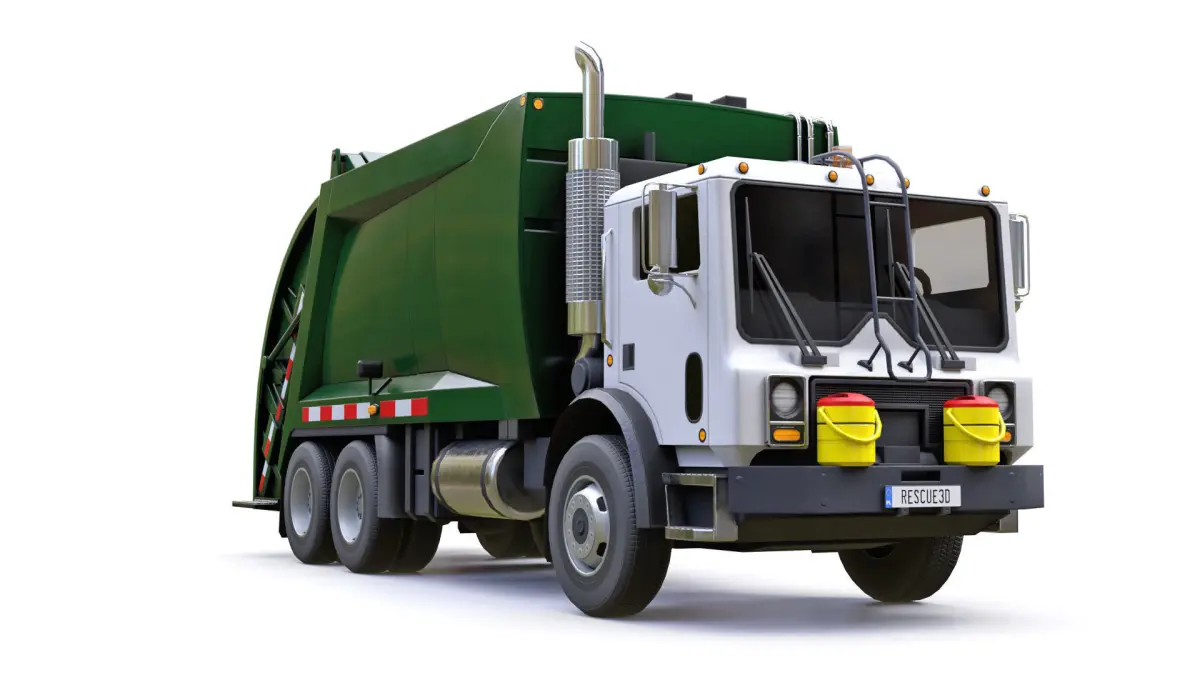 High-quality low-poly PBR 3D model of Garbage Truck. The interior part ot the cabin is also modeled and textured but with much less detail.