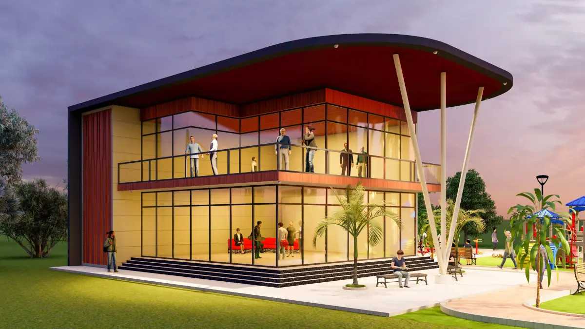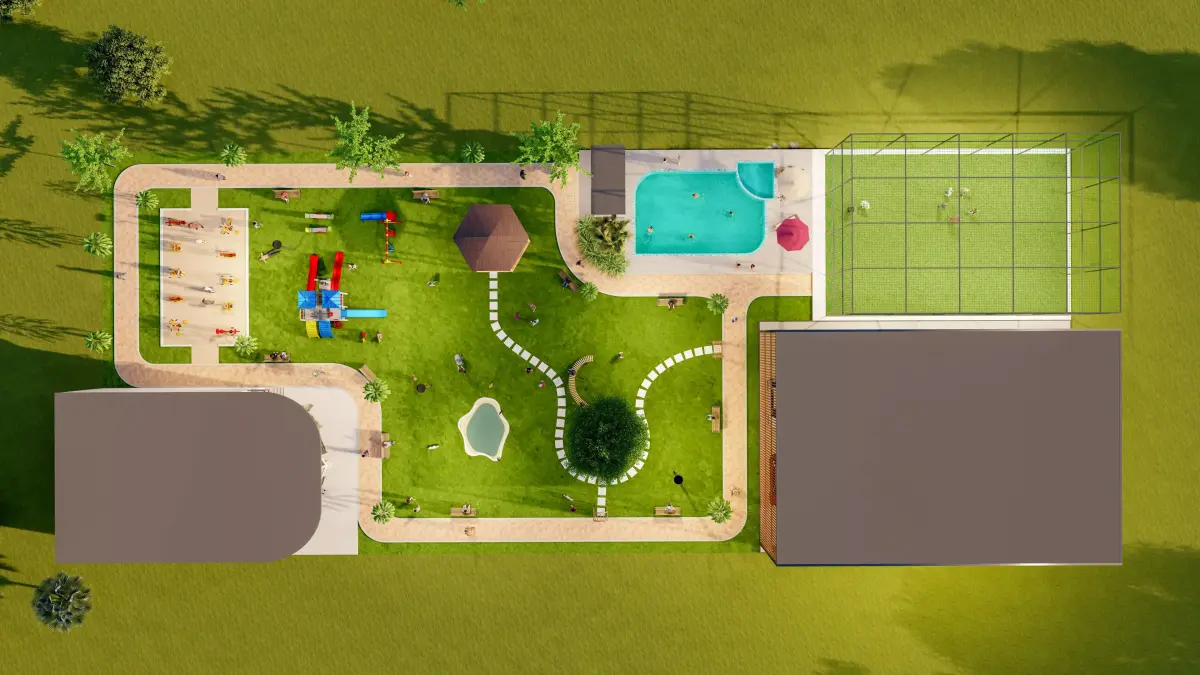 Garden 3d Model with Club House, Gymnastic, Swimming Pool, Multisports Turf and Garden
