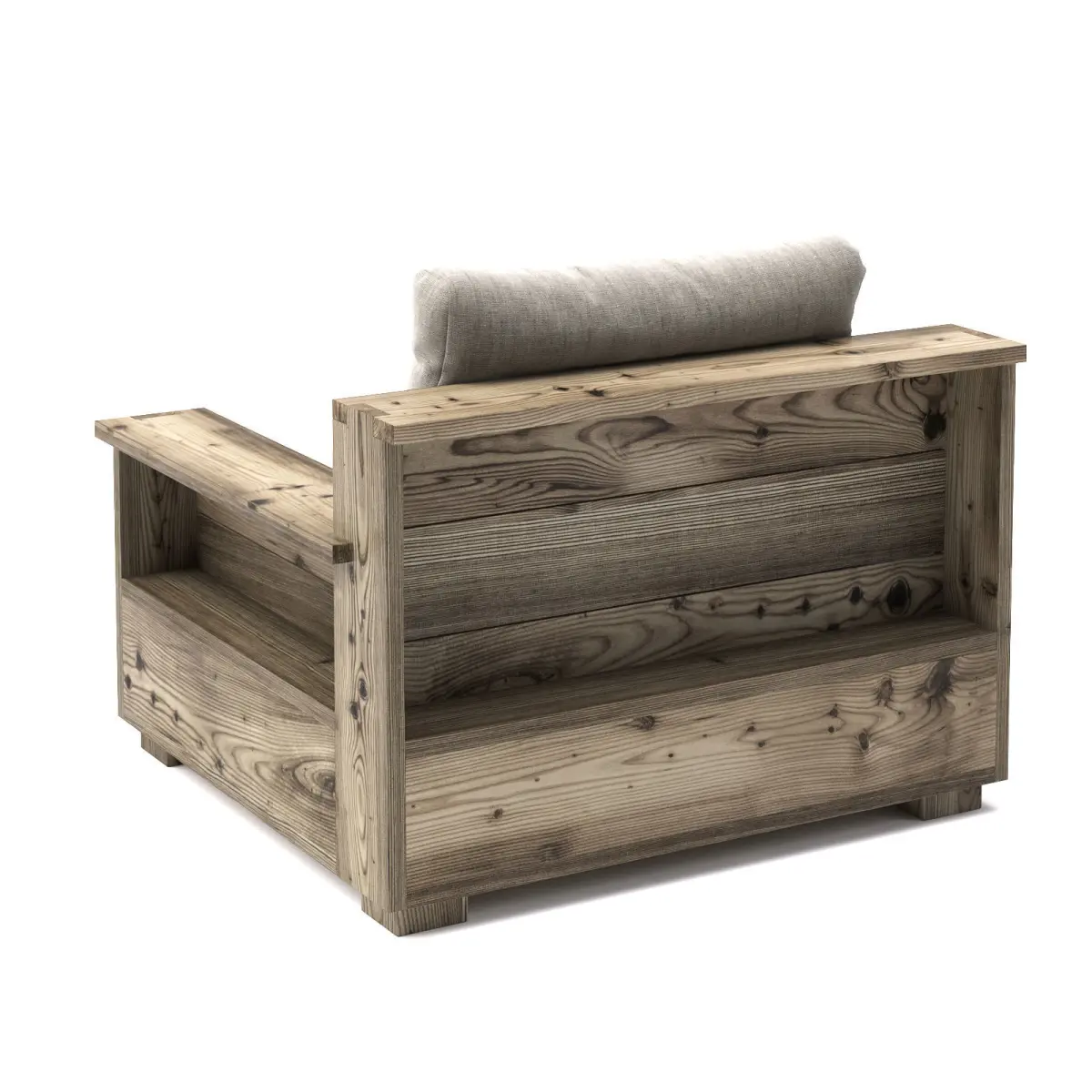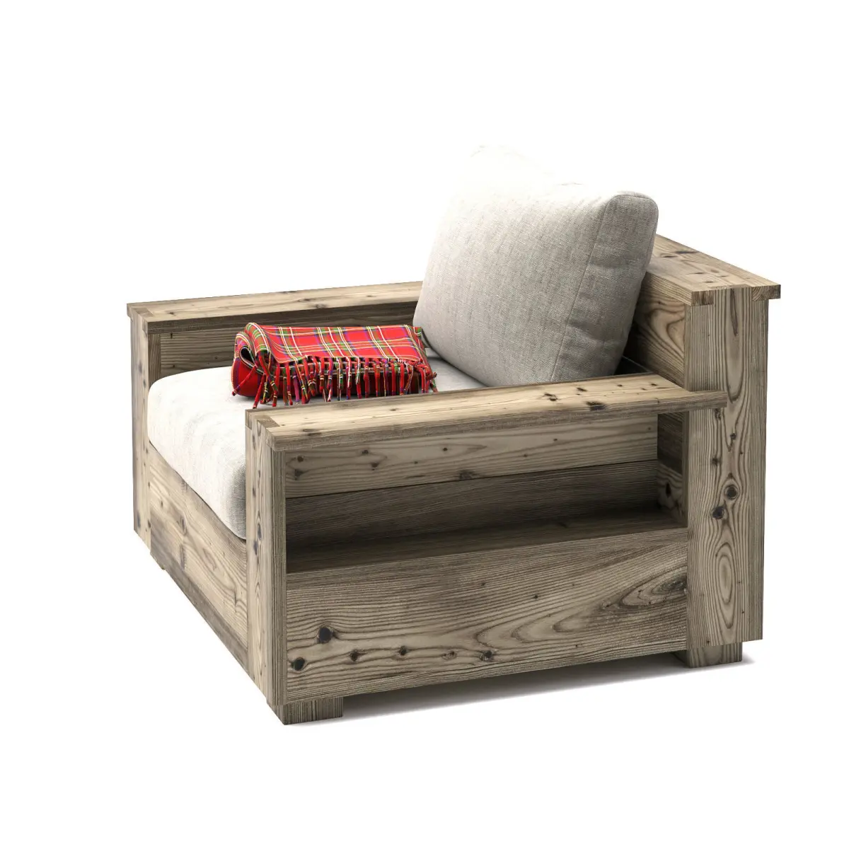 Wooden garden armchair with plaid