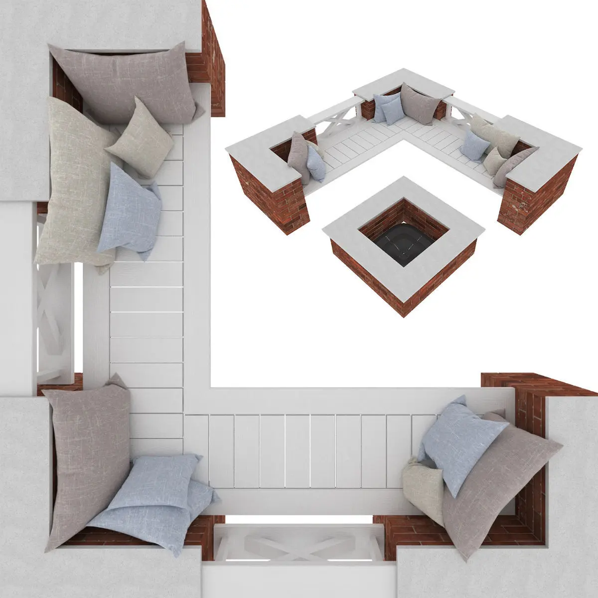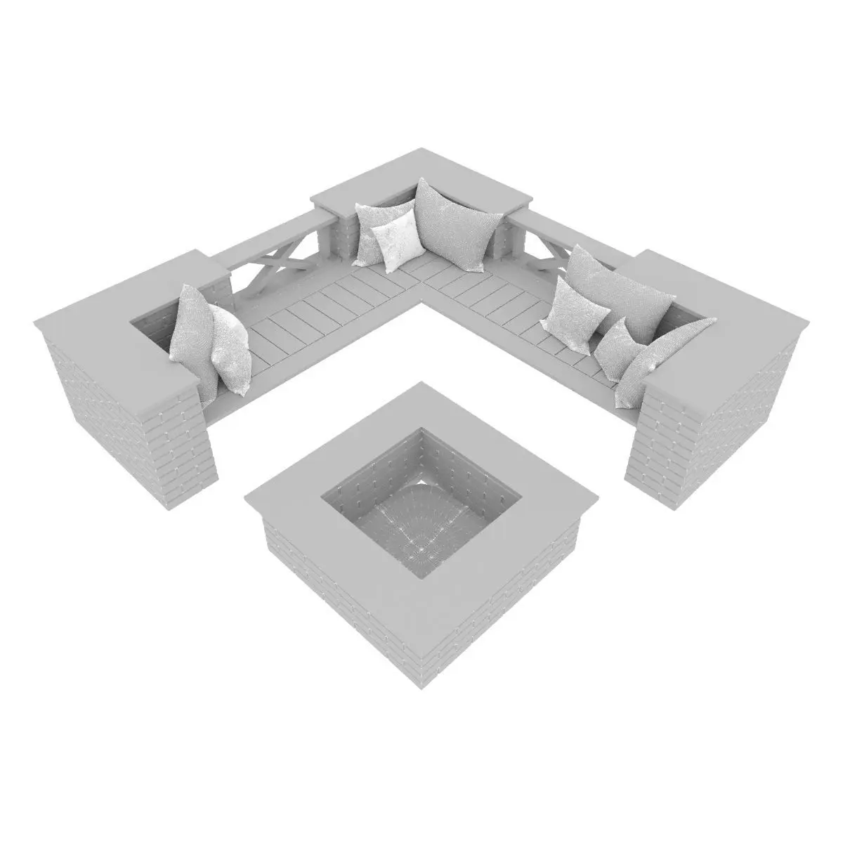 Garden brick bench with fireplace to relax.Dimensions:Height, mm: 855Length, mm: 3420Width, mm: 3420