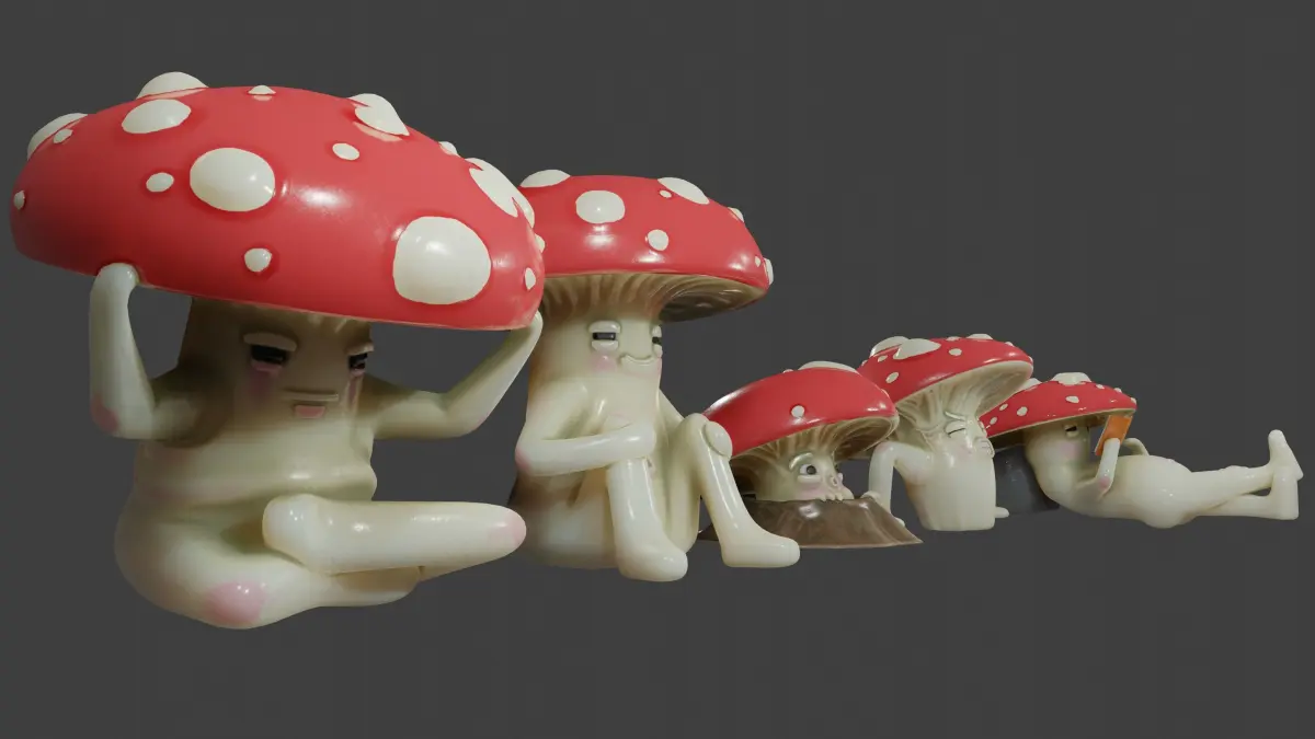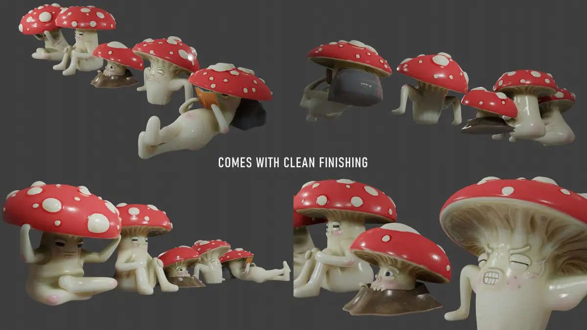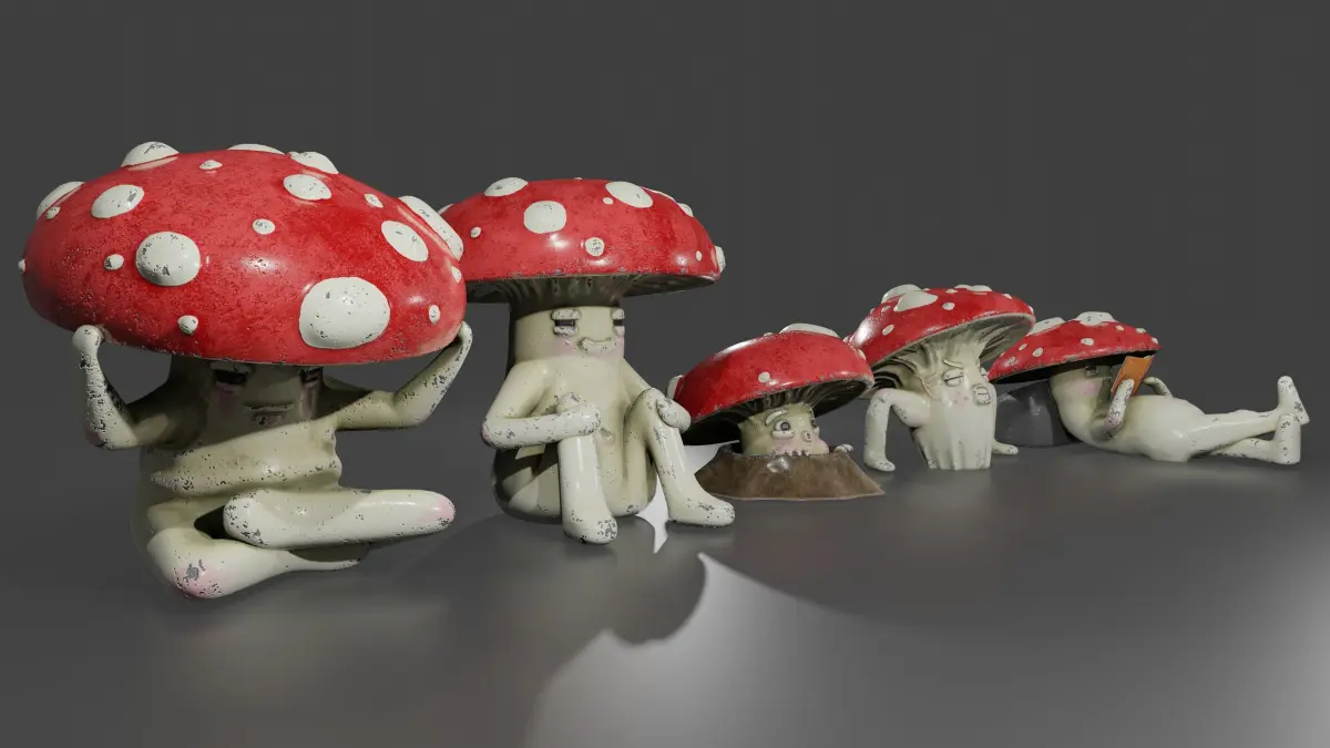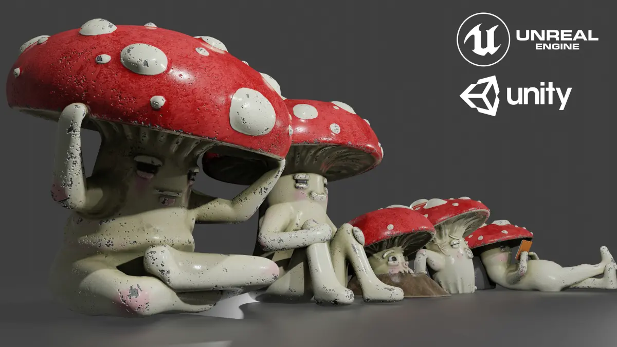 - Each mushroom has two 4k PBR Material, one looking old and dirty and another looking new and clean