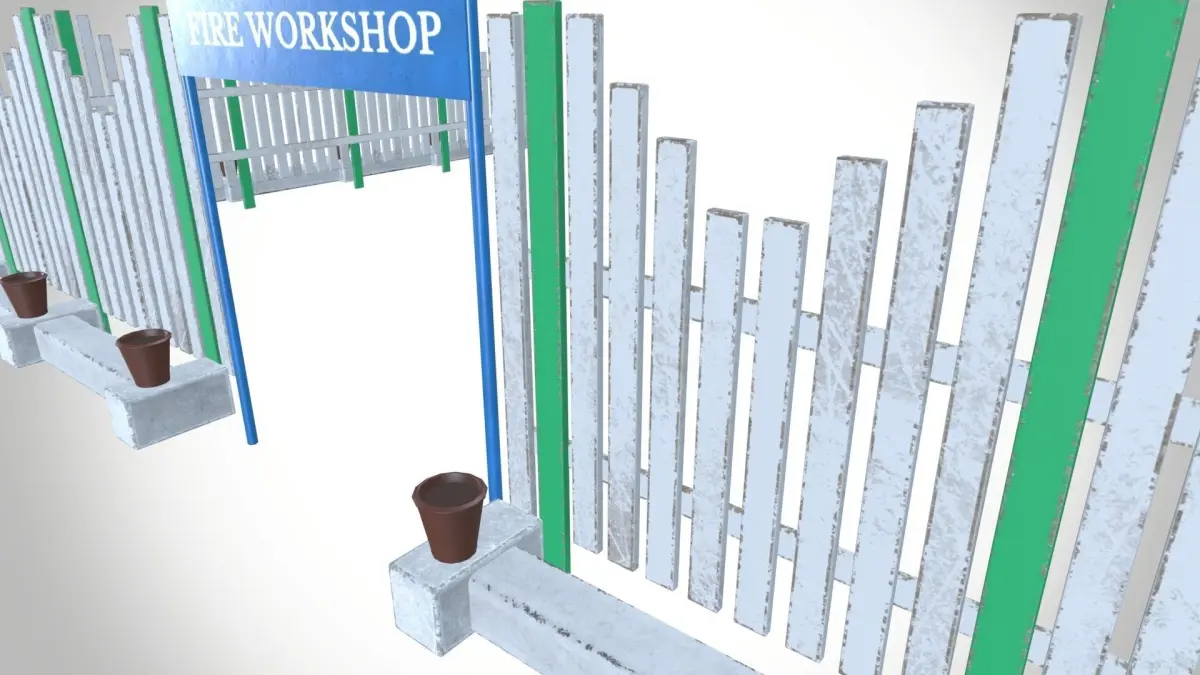 - Whether you need to section off a specific area, display important information, or simply add a decorative touch to your property, this metal fence with green poles and a sign is the perfect solution.