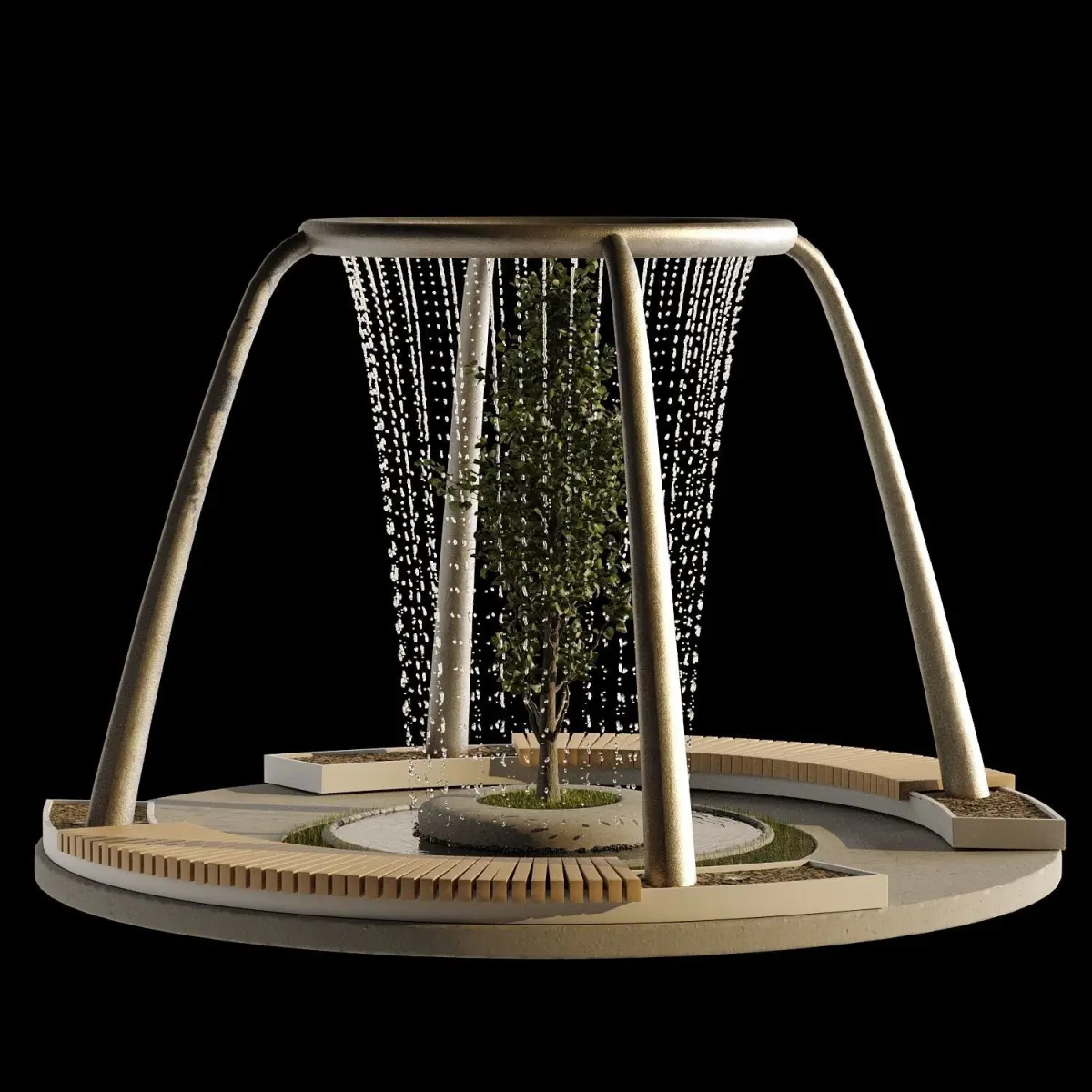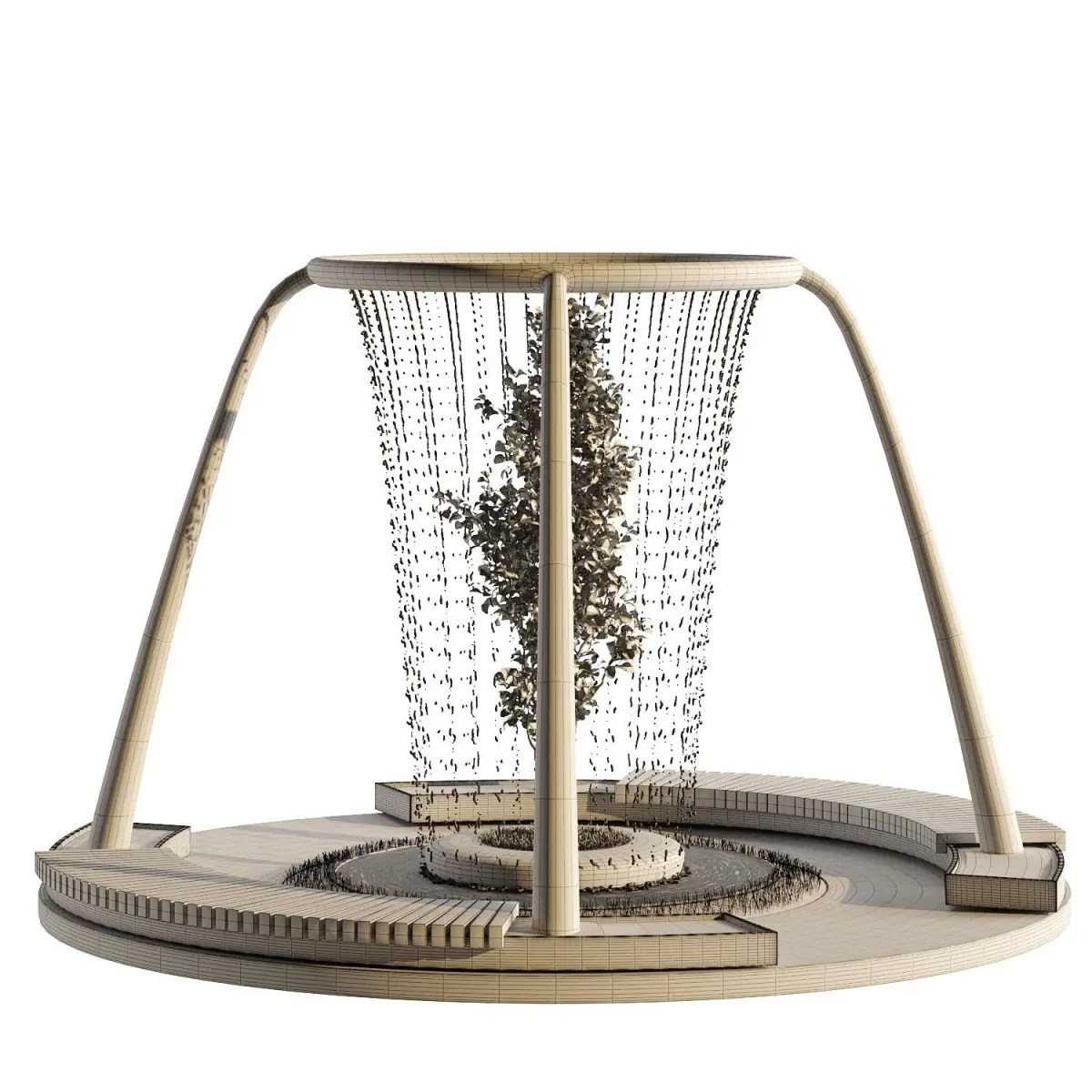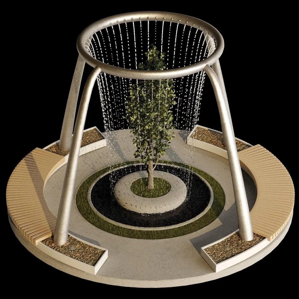Water Fountain For Gardens And Parks + Stones And GrassWater is meshFbx, objMax Version Is 2015