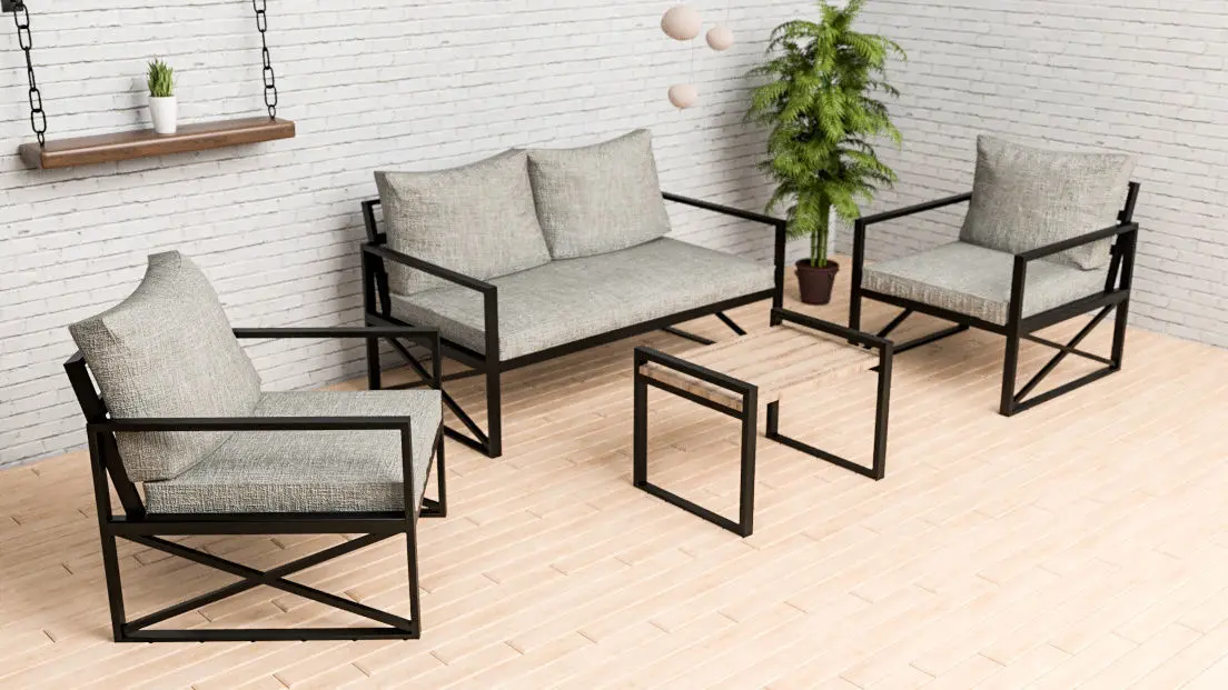 garden furniture set for outside. I use floorgenerator make floor. And render vray next 2021. I uploaded 2018 3DS max, 3ds, obj, fbx and mtl also textures.