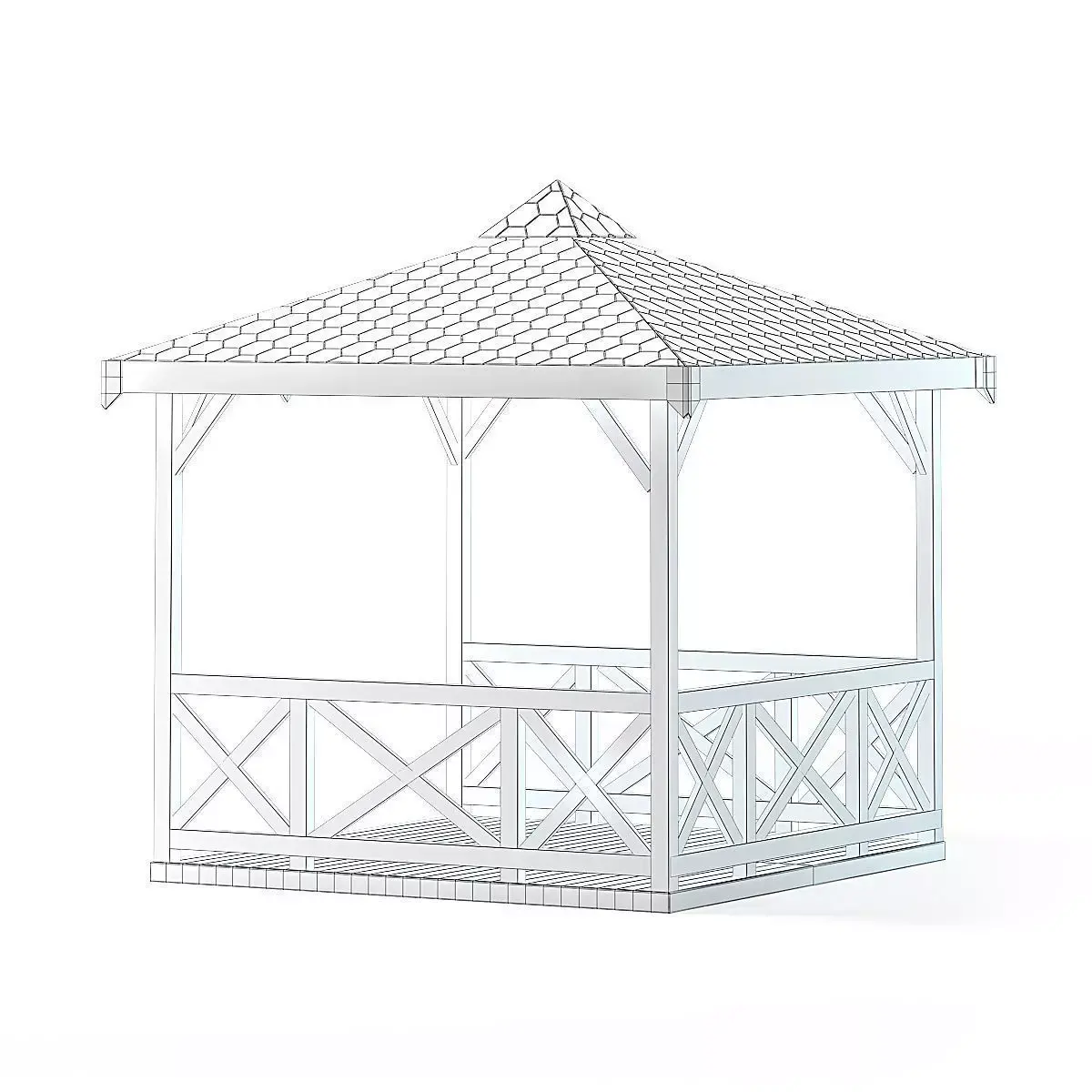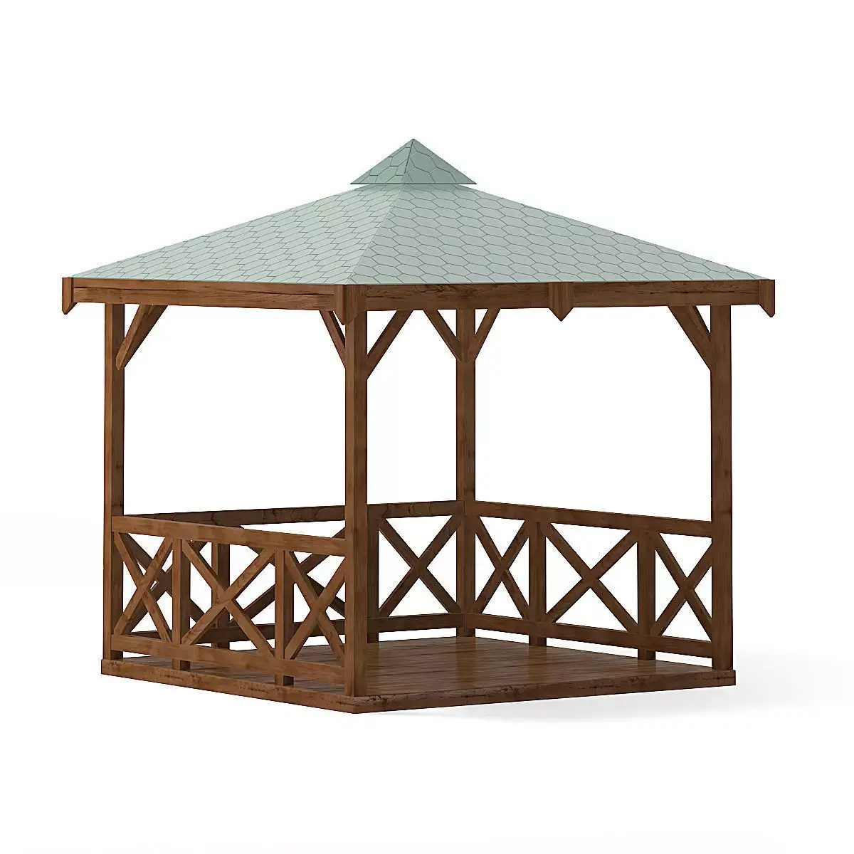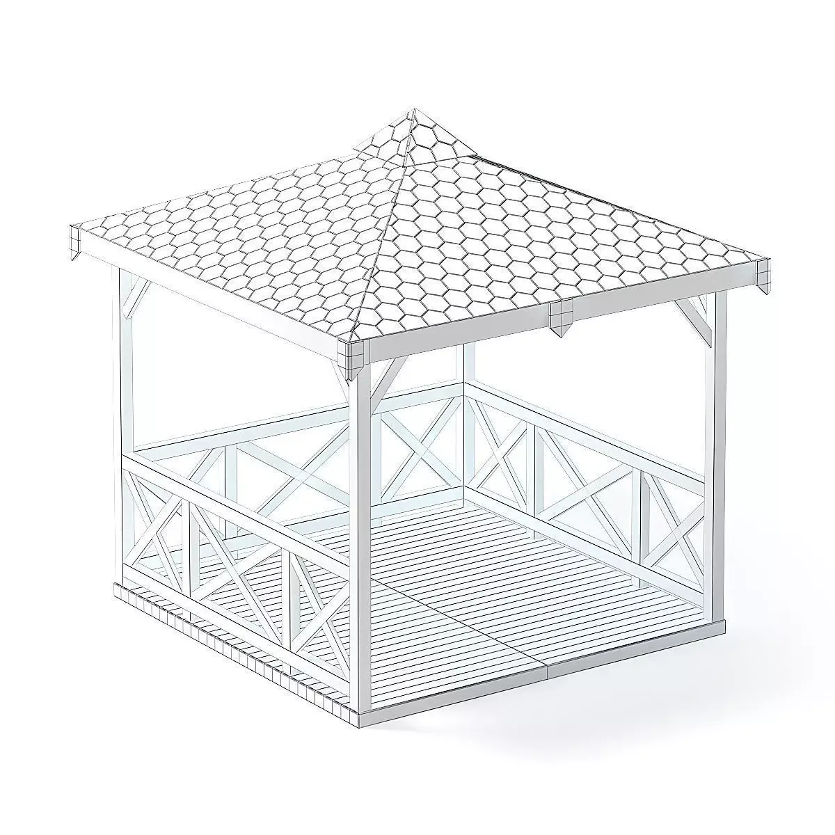 Wooden garden gazebo 3d model with a green roof. Compatible with 3ds max 2010 or higher Cinema 4D and many more.