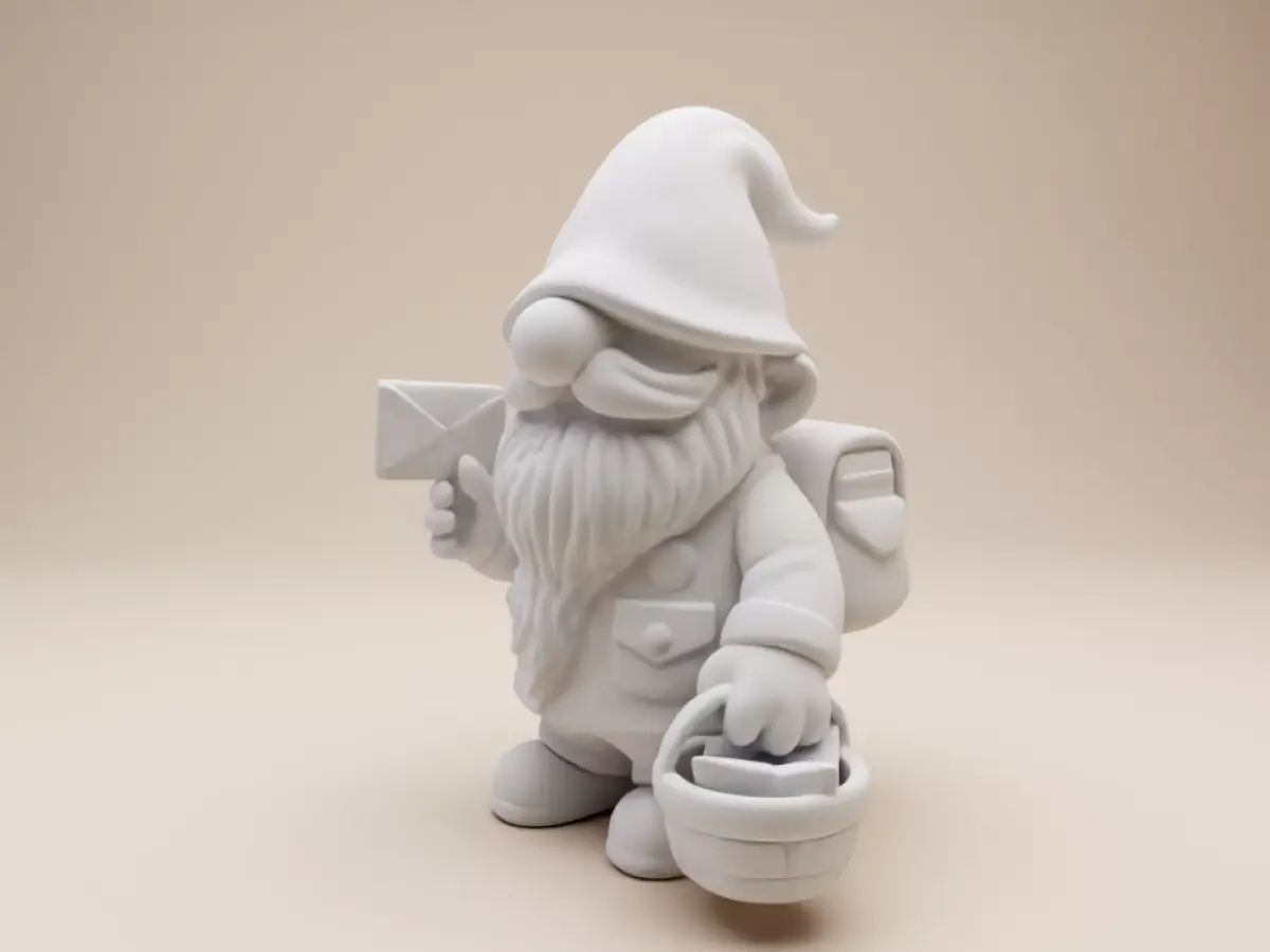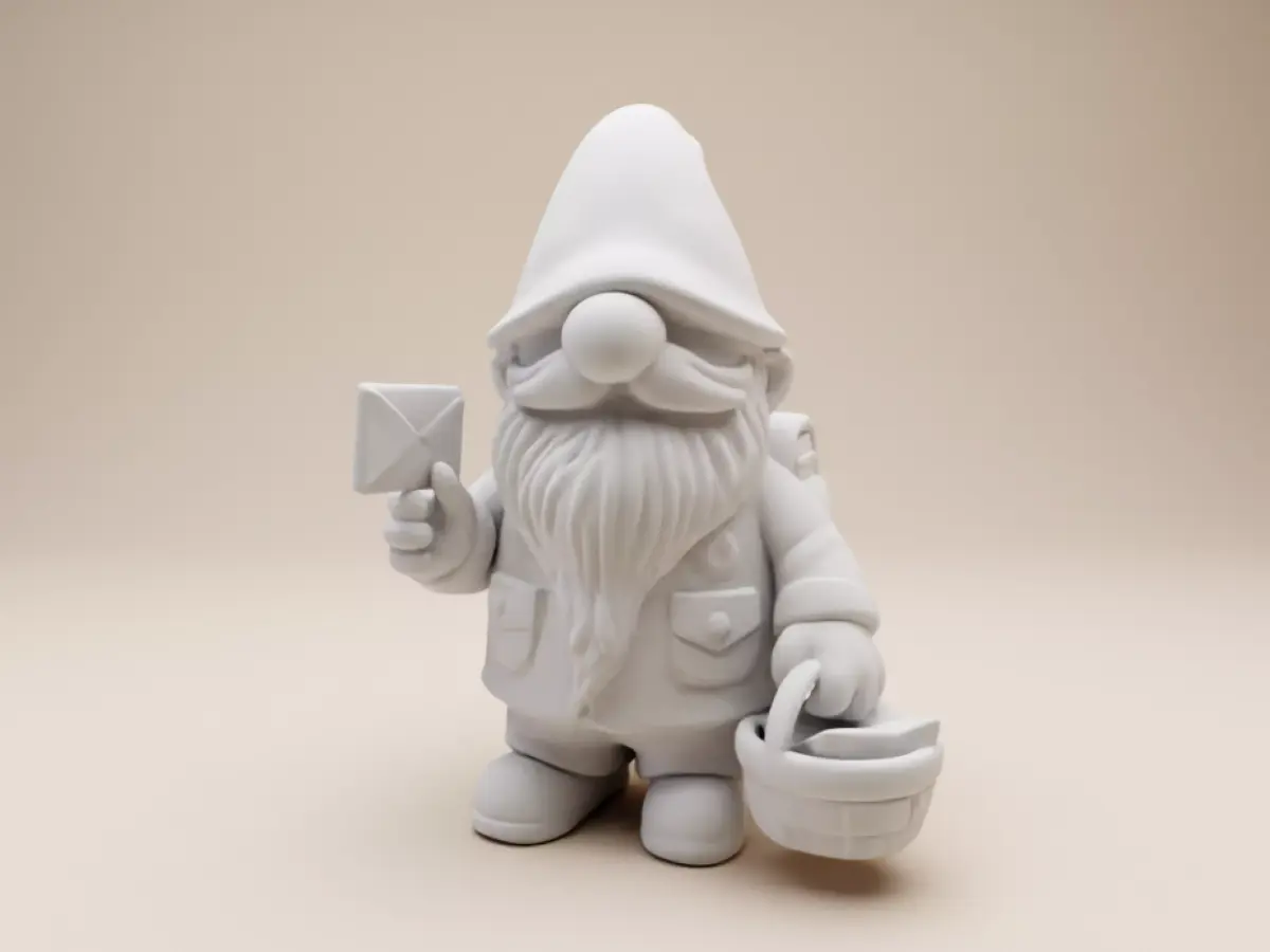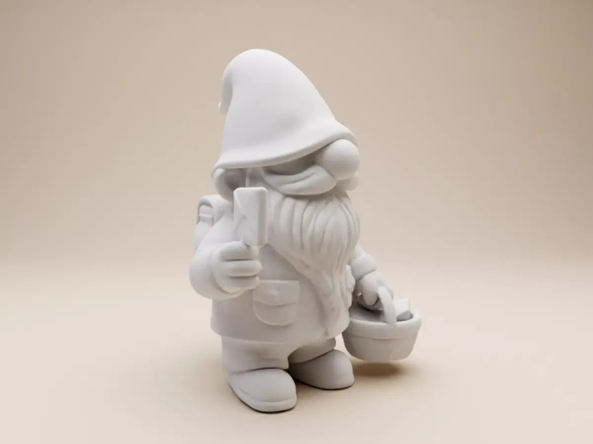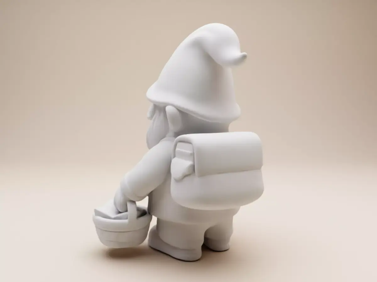 Garden Gnome Whimsical Gardener with Shovel and Basket 3D print model