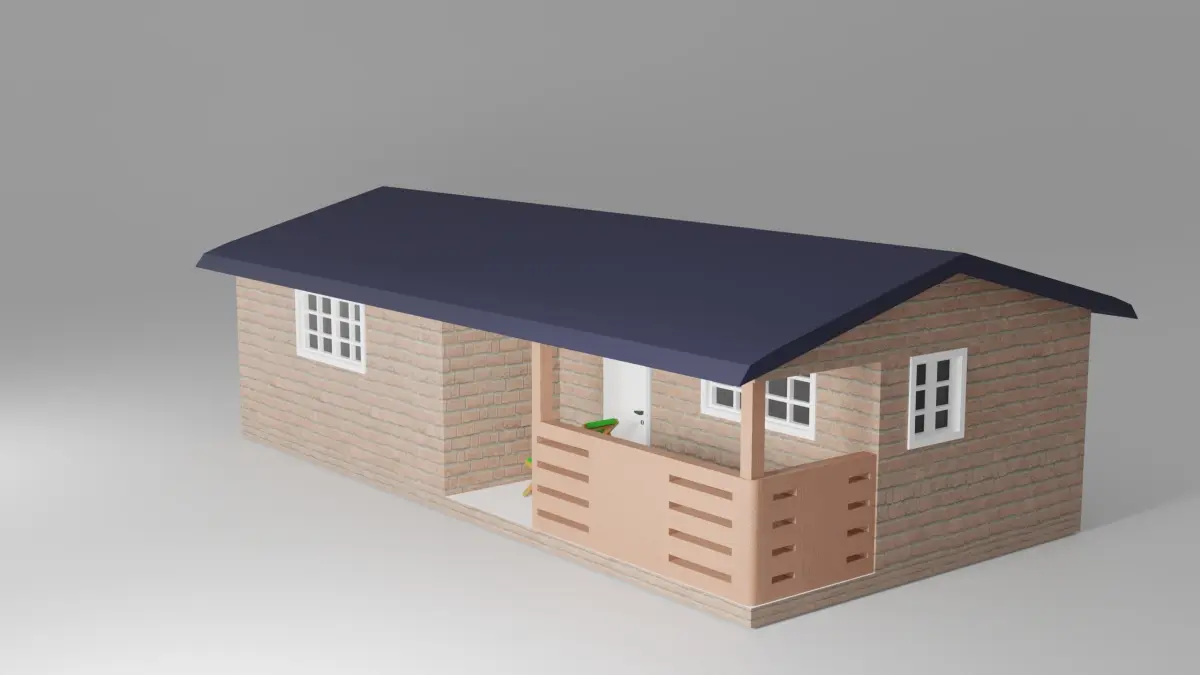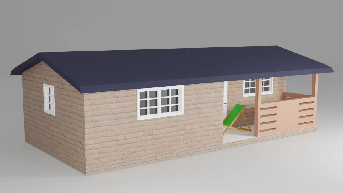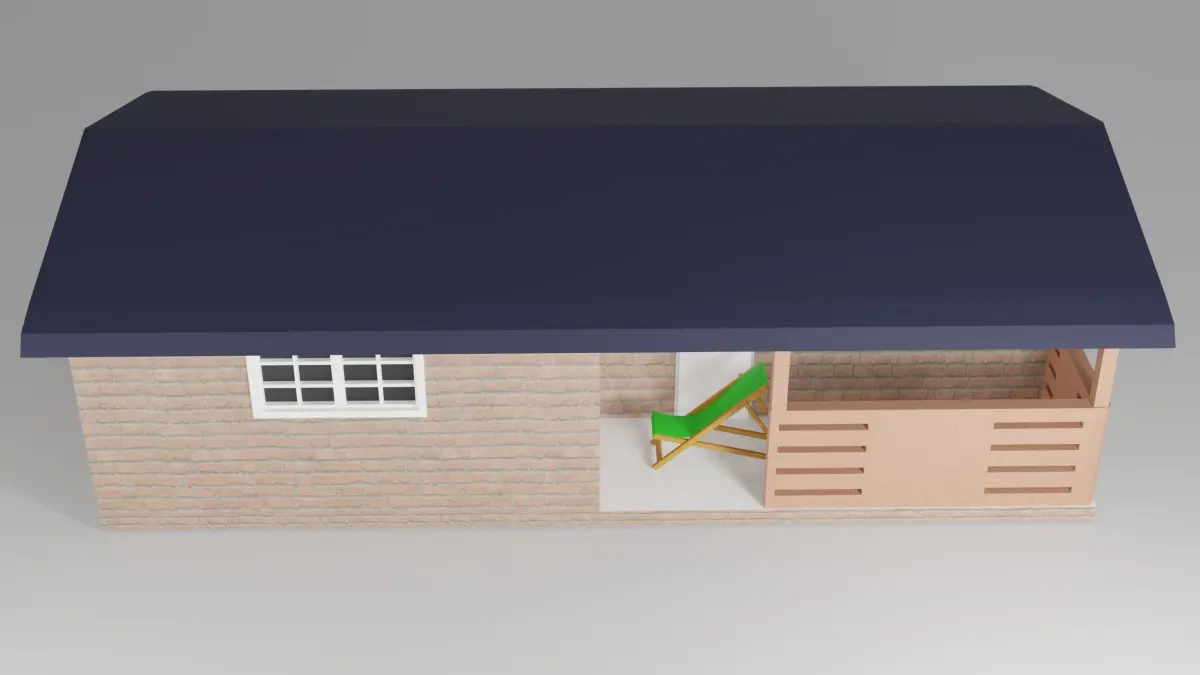 3d model of a garden house with beach chair in Blender v. 2.92 and rendered in cycles