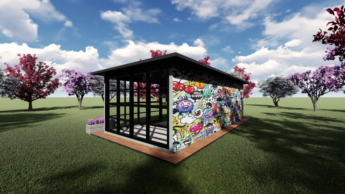 A small house that can be created in a peaceful environment. It can be named as a winter garden or a garden house. floor height is 3 meters. It was designed as a masonry structure.