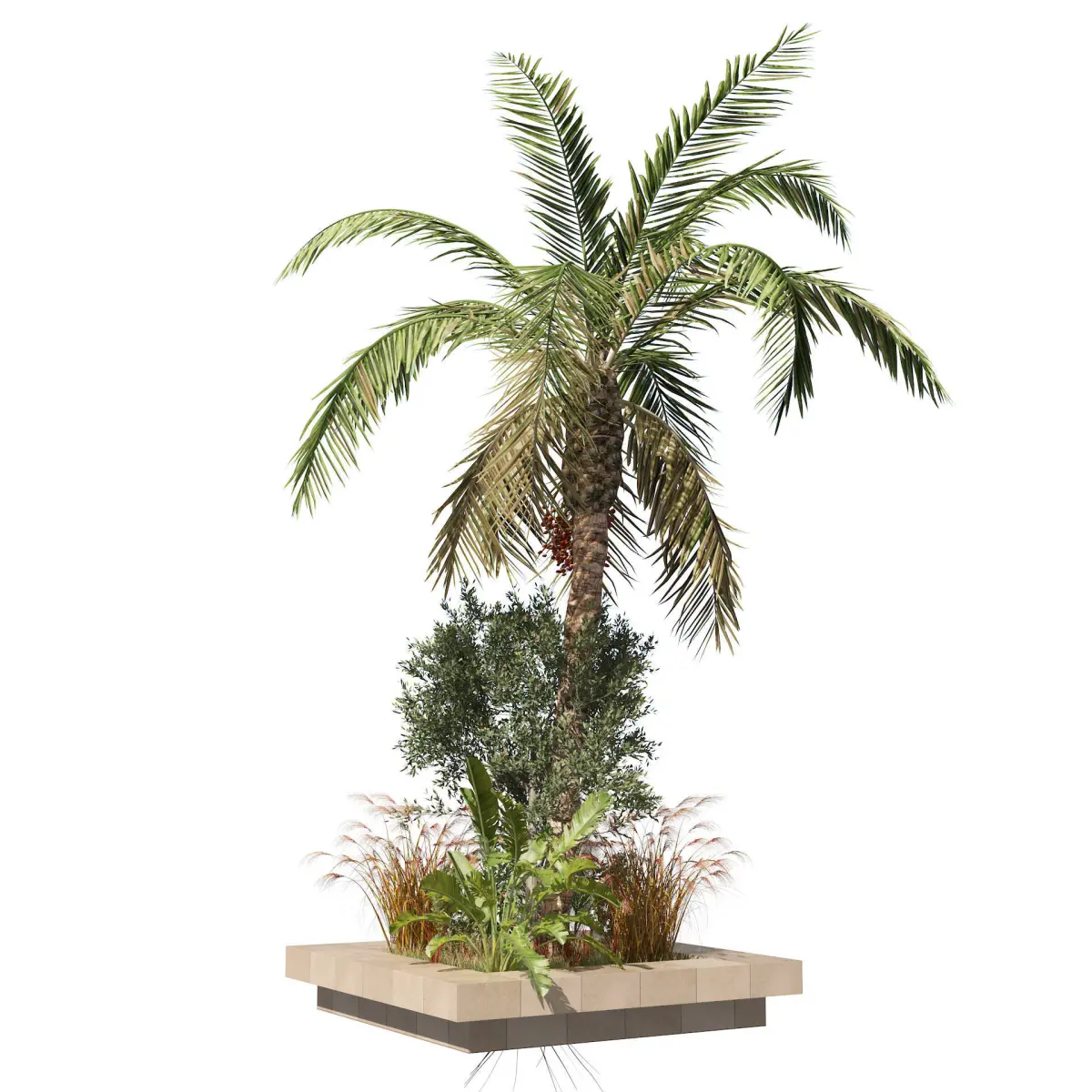 Highly detailed 3d model of landscape plants island, made with models created as a separate unit then assembled in garden island planter, which if necessary can be blocked in different garden shape or used separately.
