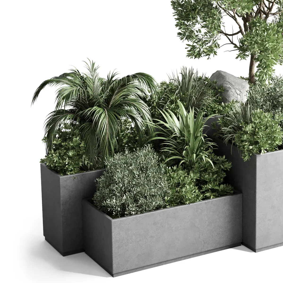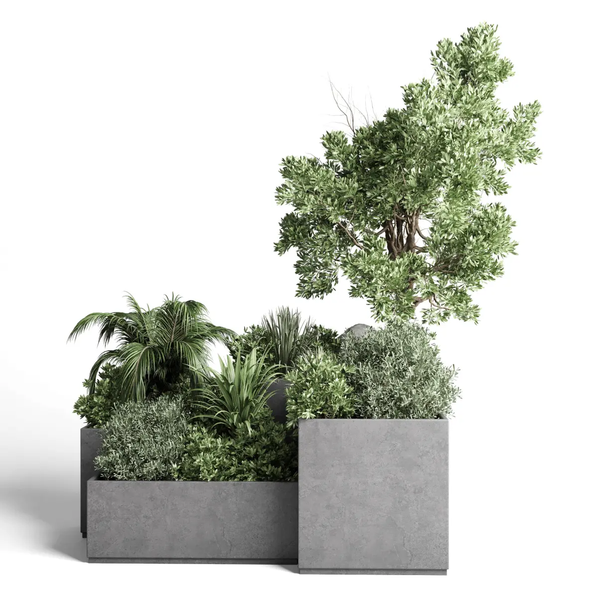 Garden plants in concrete boxes standing - set outdoor plant 121File 3dmax 2015 vray_corona