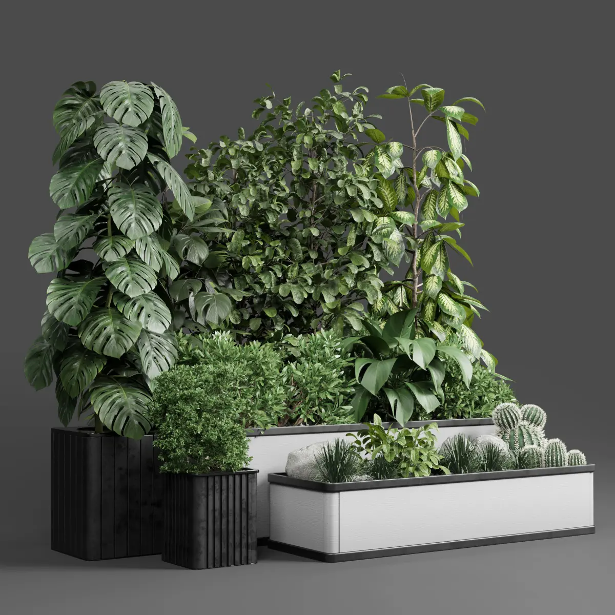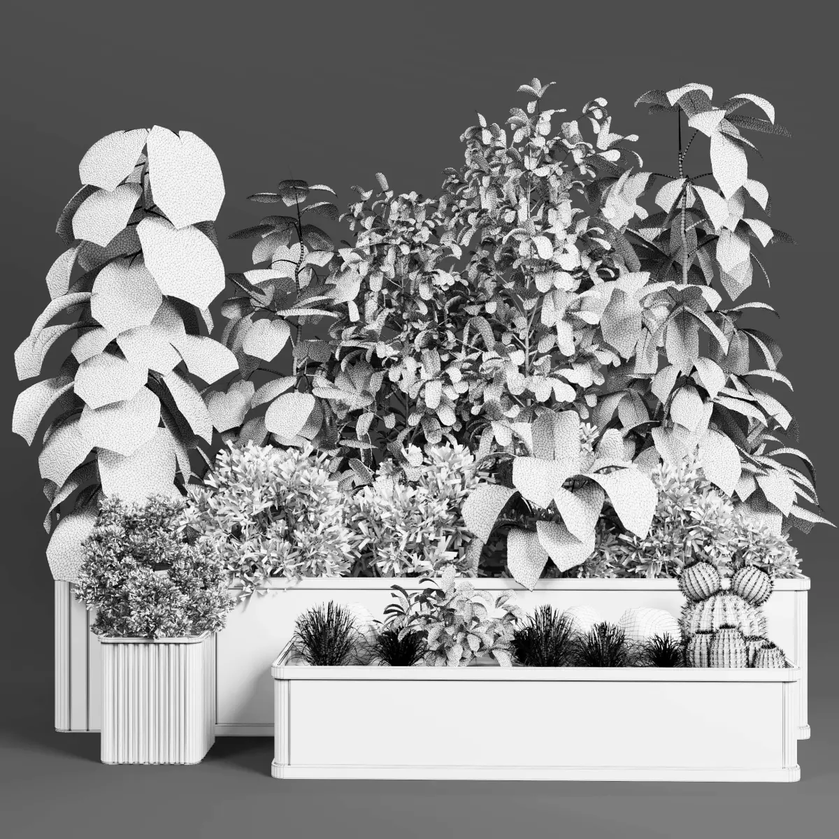 Garden Plants set - Concrete box plants on stand - set indoor 285 concrete dirtFile 3dmax 2015 corona_vrayexport file obj - fbx