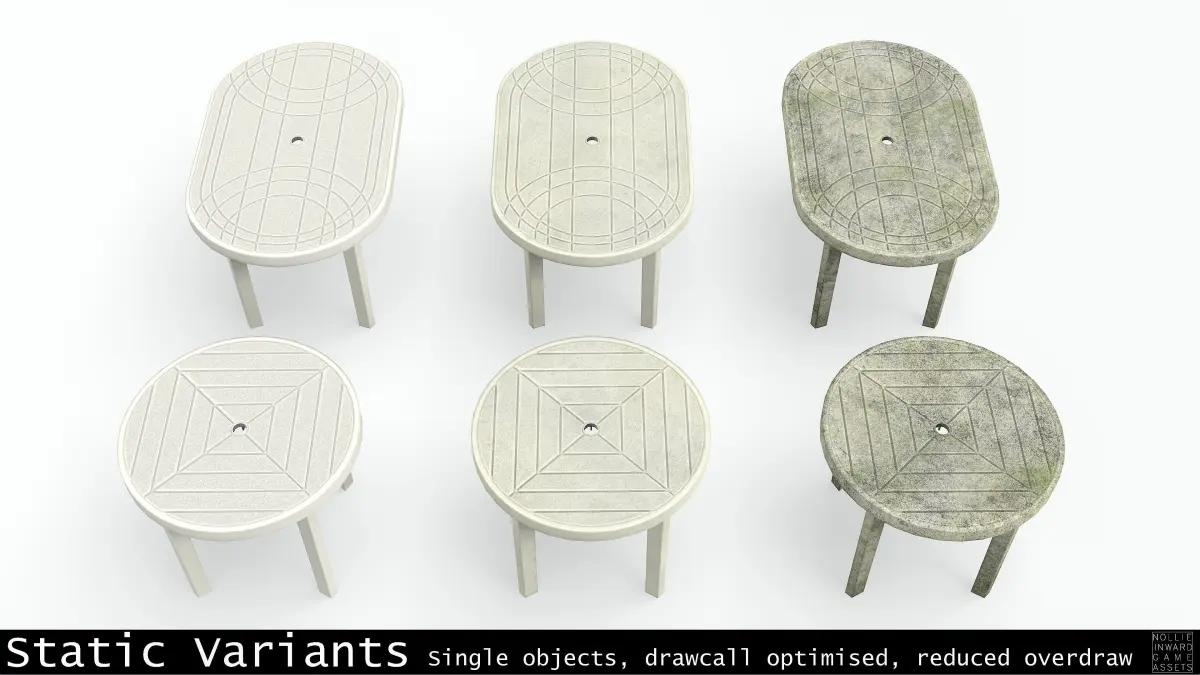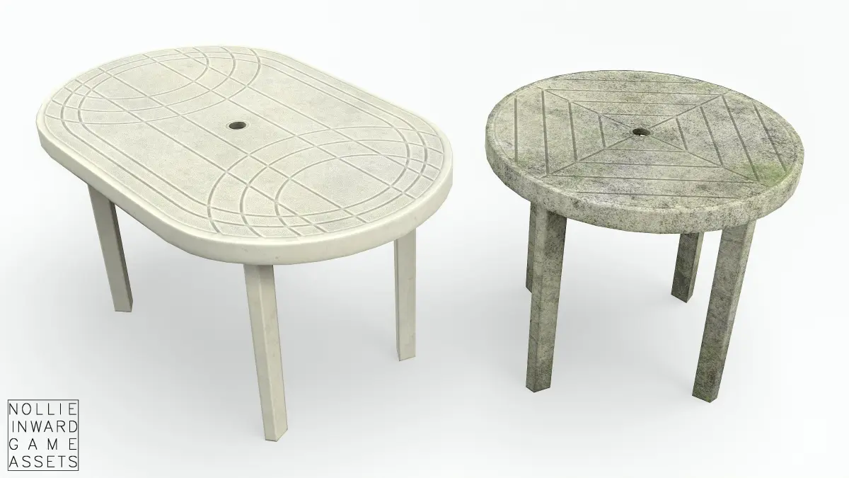 Garden Plastic Tables White - Long and Round - 3 Texture Variants (Clean, Dirty and Old).