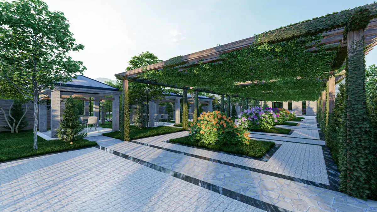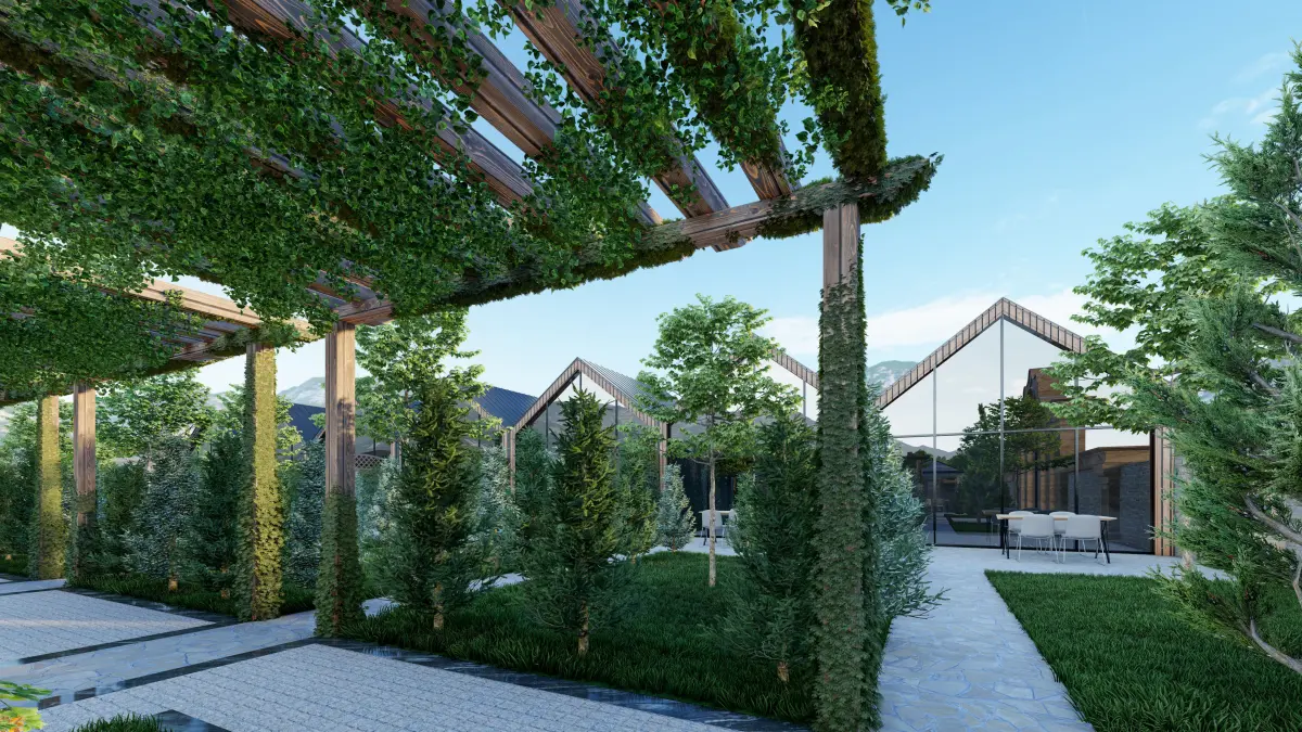 Garden Restaurant PROJECT. MODELING WAS DONE IN REVIT 2019. RENDERED WITH LUMION 11. ALSO AVAILABLE IN FBX MODEL OF THE SCENE and RESTAURANT (A FRAME) PLAN.